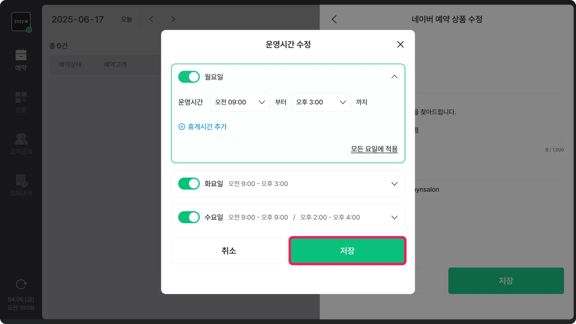 개별 상품 운영시간 변경 → [예약 상품 관리] 바로가기 *링크 추가 필요