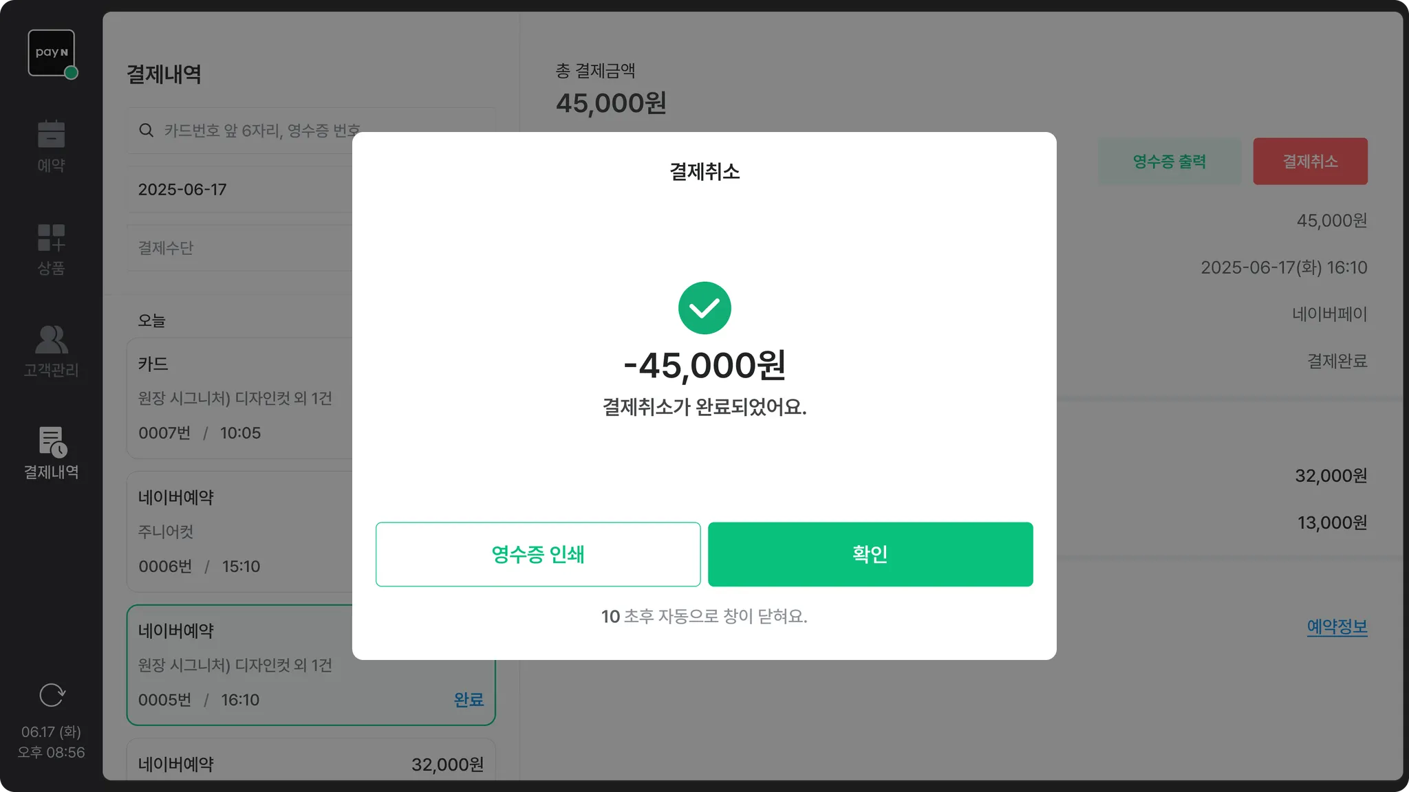 네이버페이 결제 취소 요청을 보내고, 곧 결제가 취소돼요.