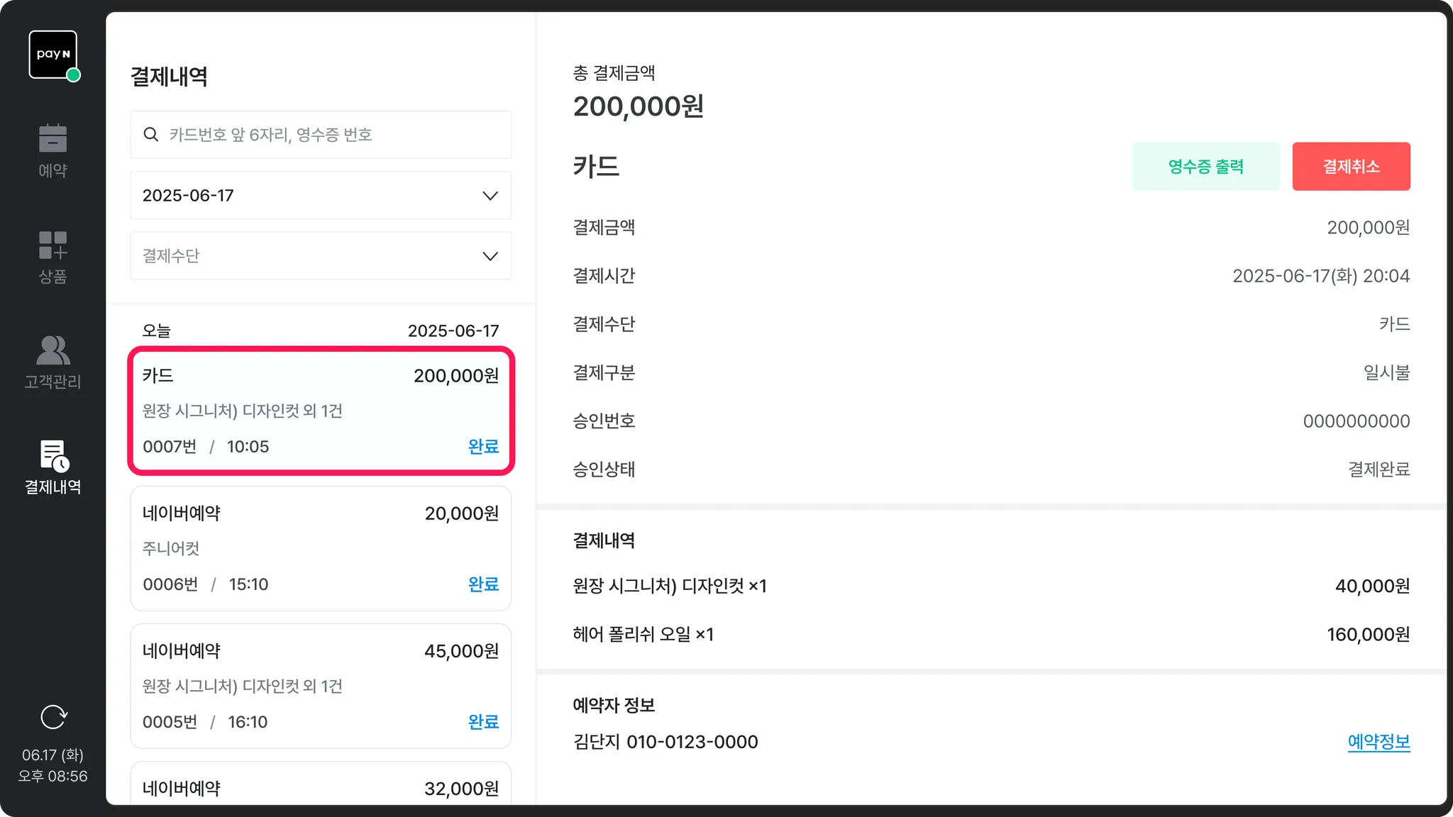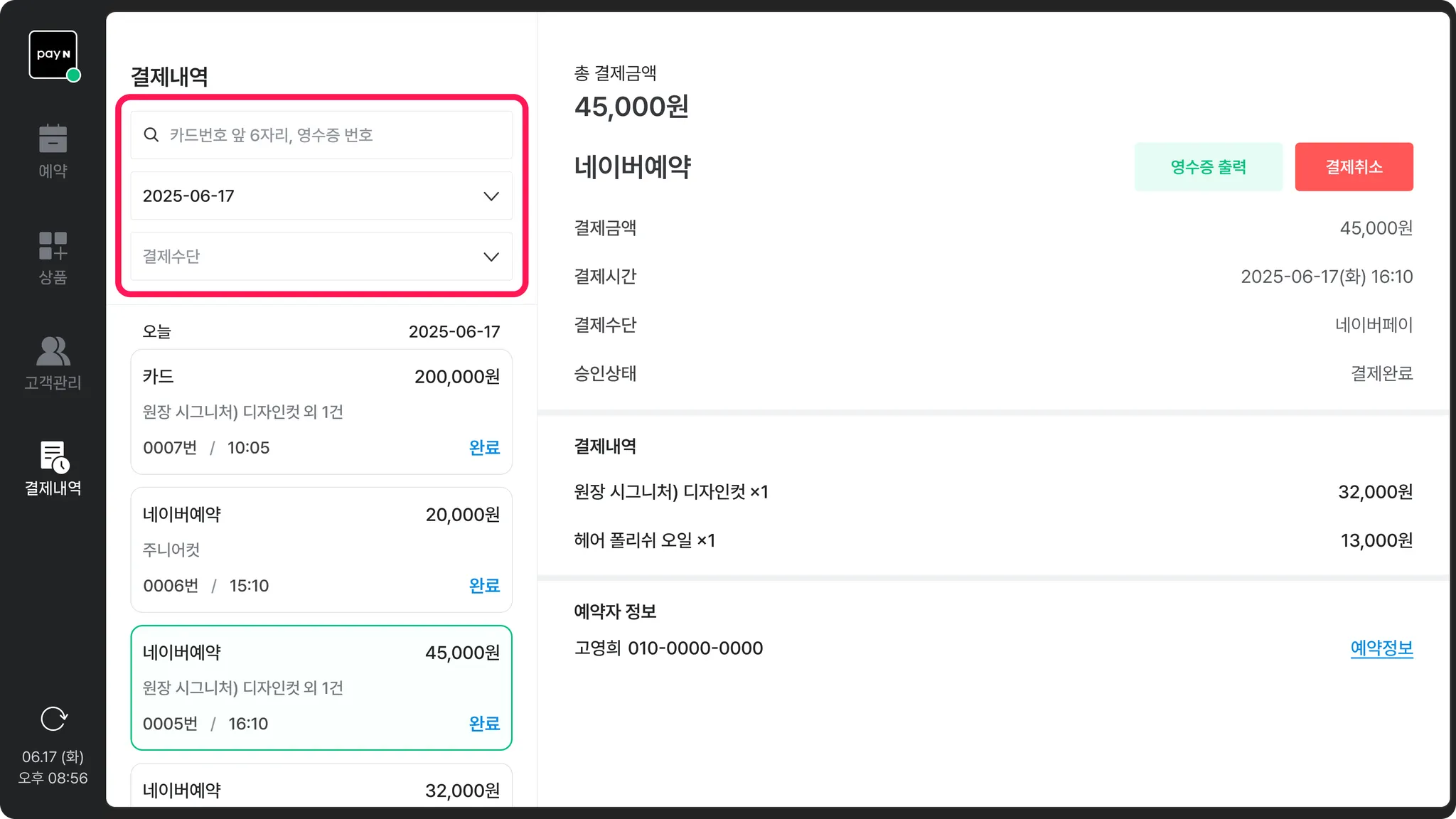 카드번호 앞 6자리, 영수증 번호를 입력하여 결제내역을 찾을 수 있어요.