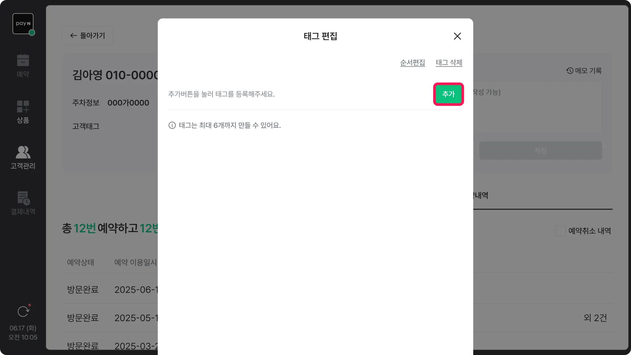 태그 삭제 시, 고객 정보에 등록된 태그도 모두 삭제되는 점 유의해 주세요.고객 메모 기록