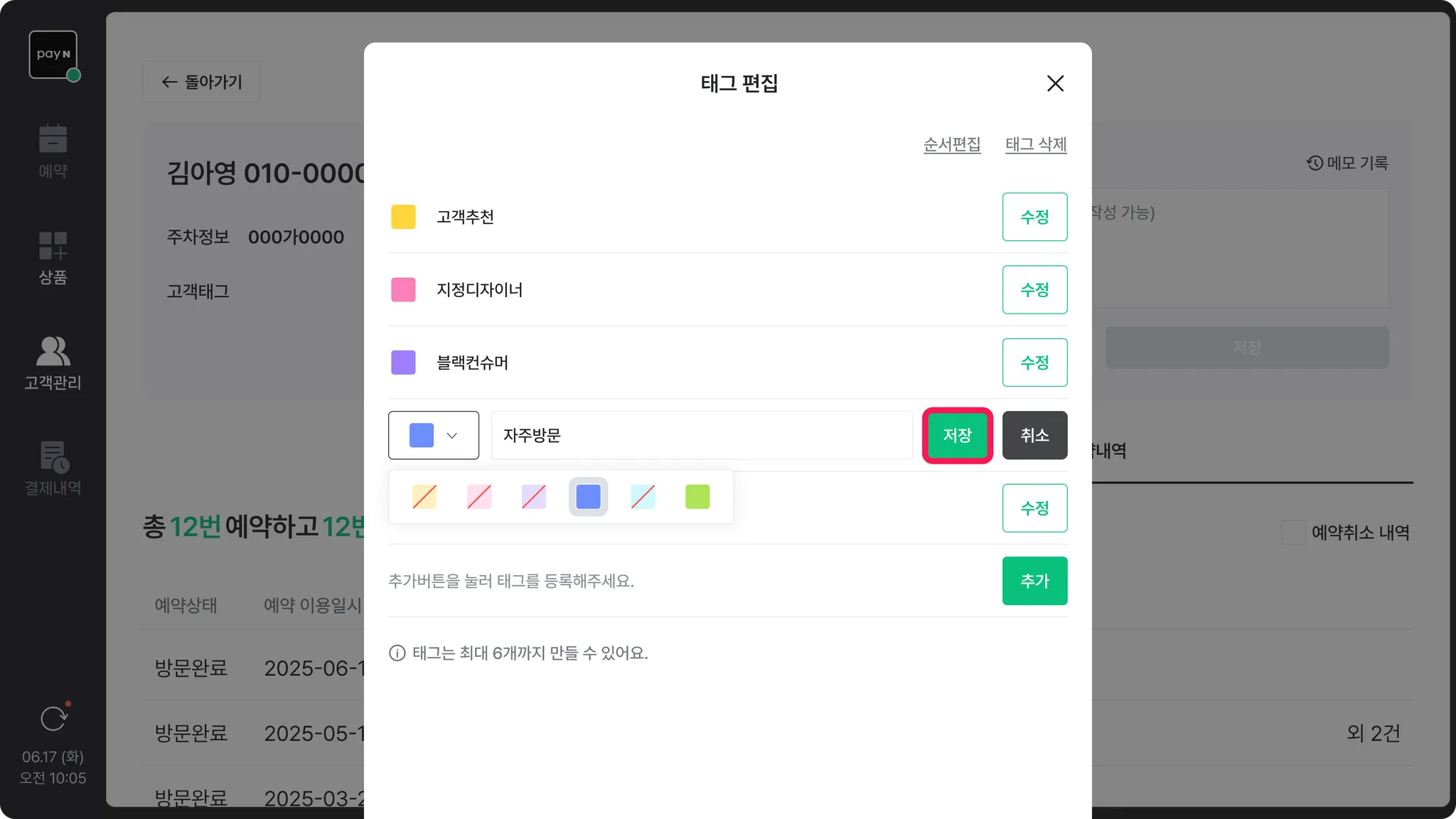고객태그를 선택 후, [저장]을 눌러주세요.