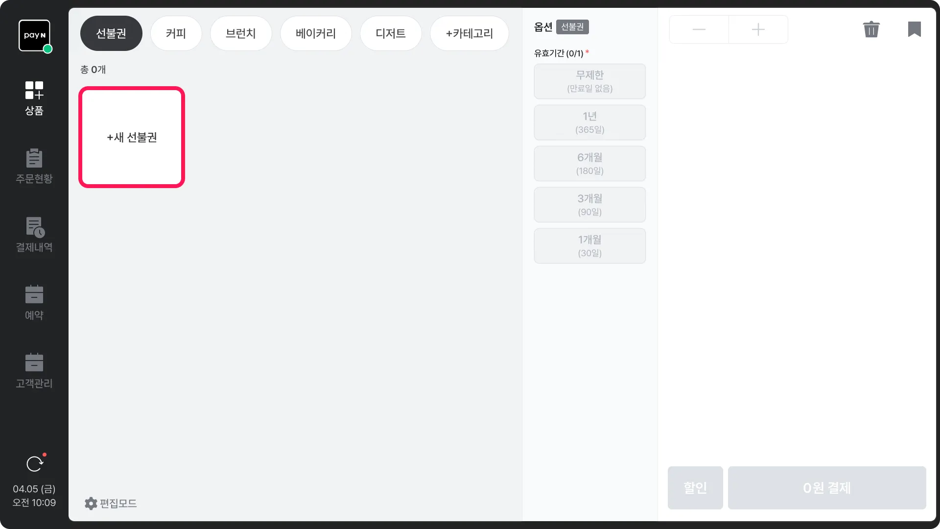 [선불권] 카테고리에서 [+새 선불권]을 눌러주세요.