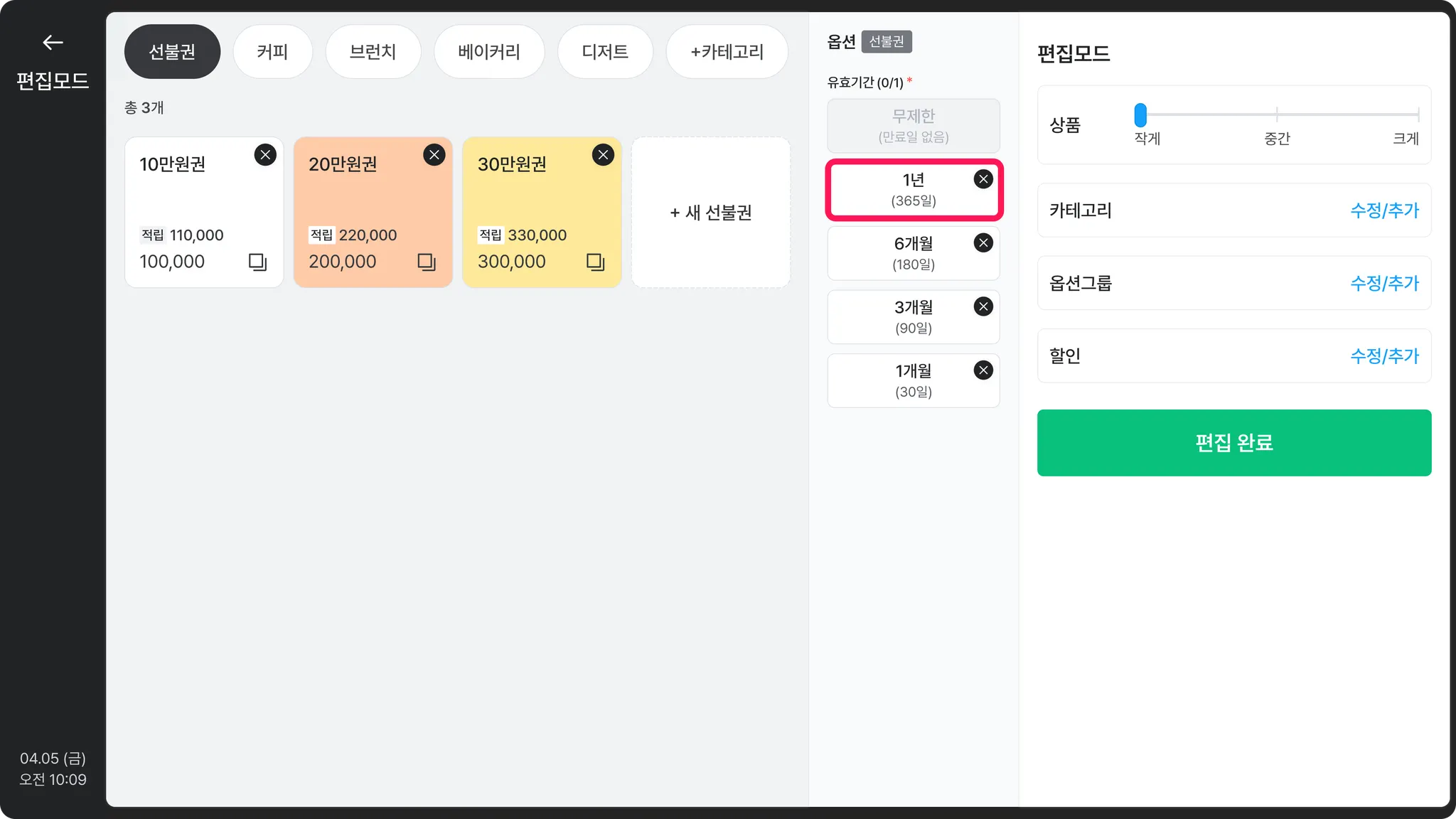 편집모드에서 수정할 유효기간 항목을 눌러주세요.