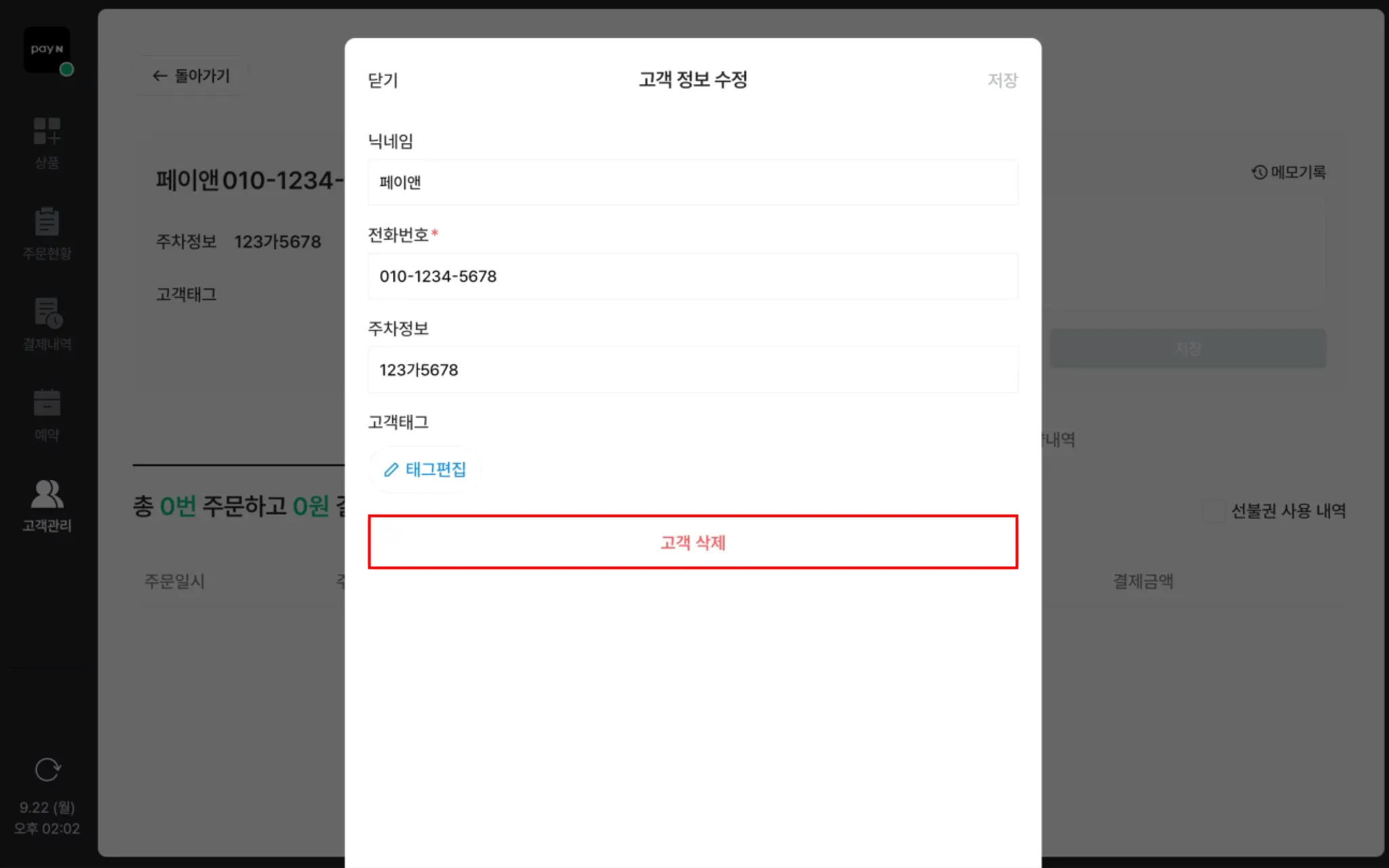 포스에 등록된 고객을 삭제할 수 있어요. 잘못 등록한 고객 또는 삭제 원하는 고객이 있다면 포스에서 바로 삭제하실 수 있어요