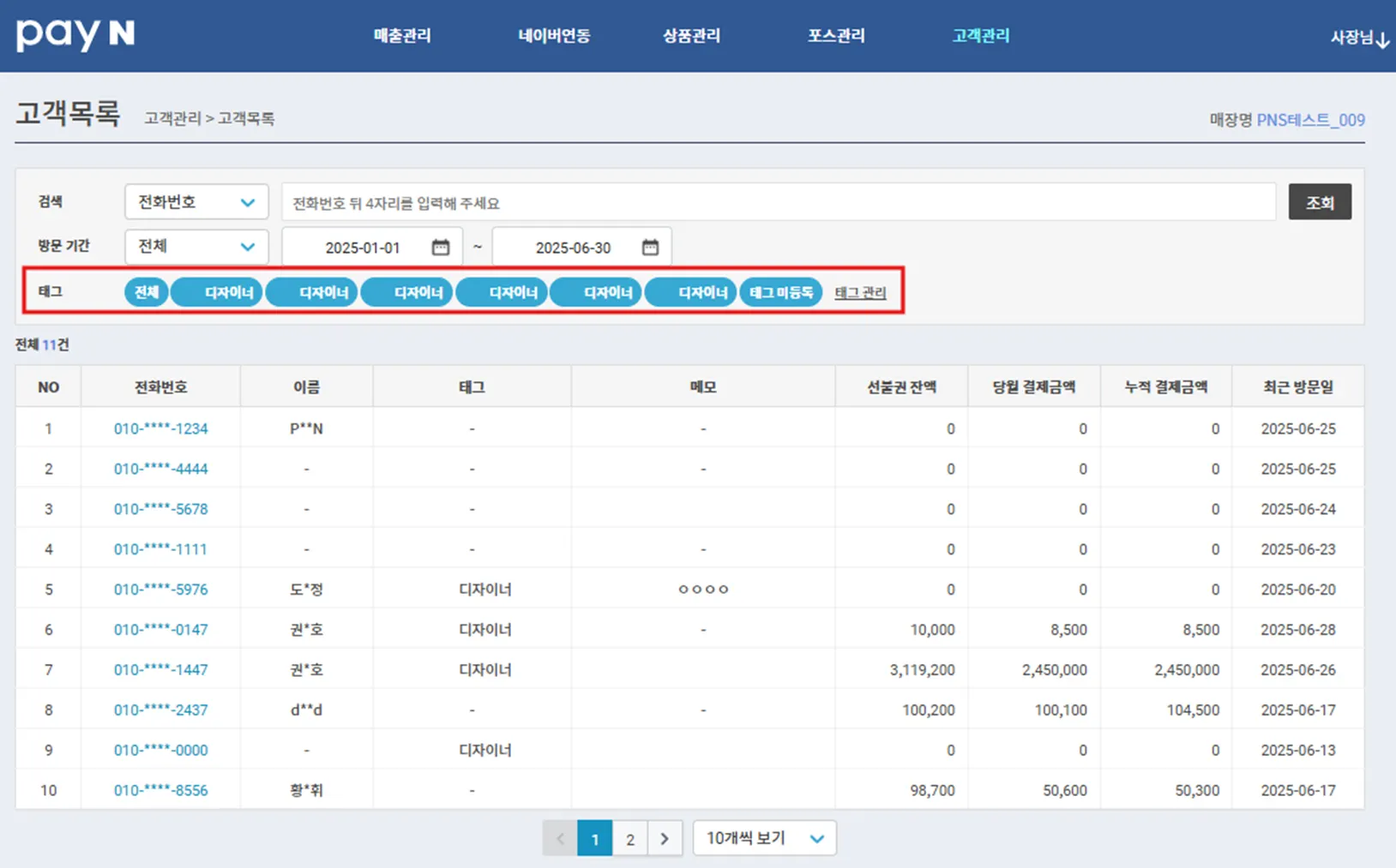 고객 태그 관리