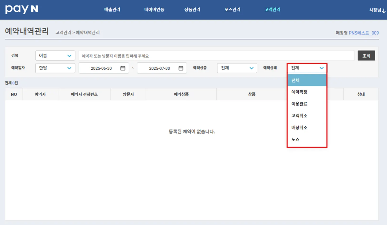 예약 상태를 선택하면, 원하는 상태별 예약 내역만 조회 가능해요.