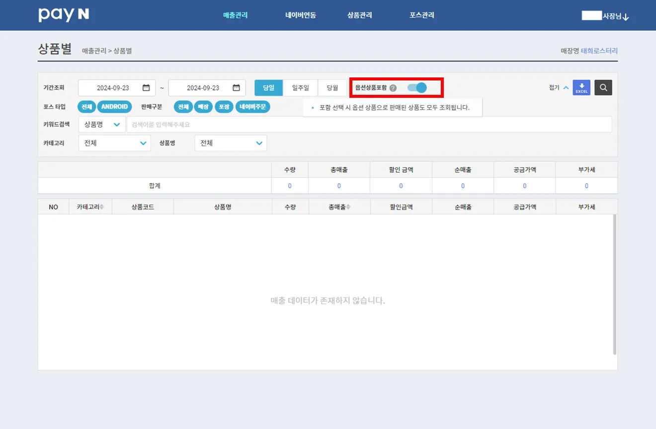 옵션 상품 포함 활성화 시, 옵션으로 지정된 상품도 포함된 매출을 확인할 수 있어요.