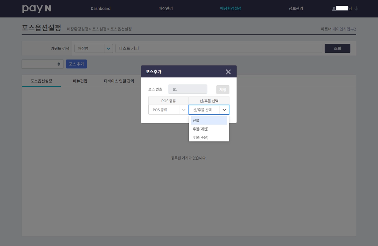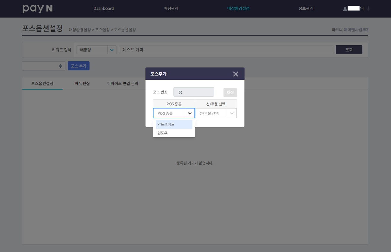포스 종류선/후불을 선택해 주세요. ex) 윈도우