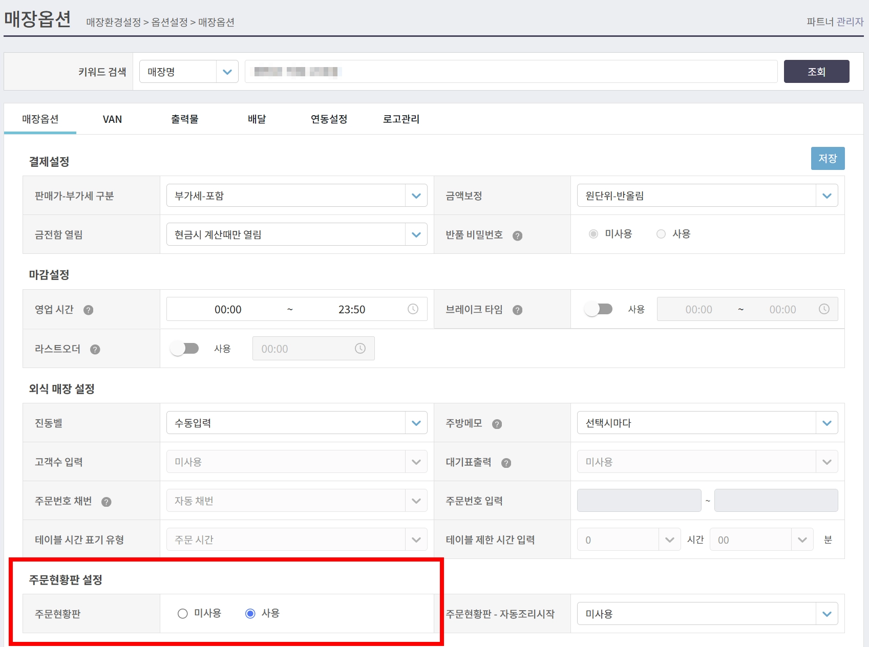 주문현황판 설정에서 주문현황판 사용 여부를 설정해 주세요.