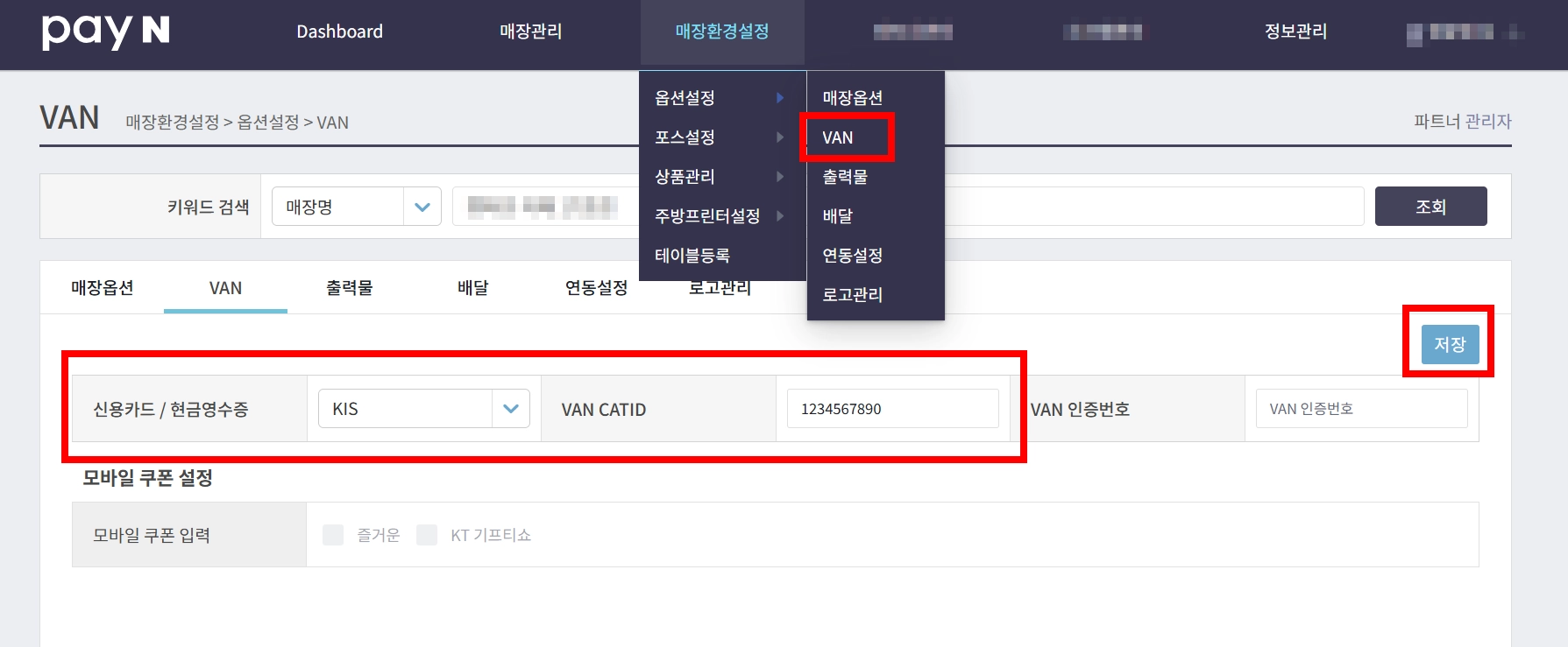 VAN CATID를 입력해 주세요.