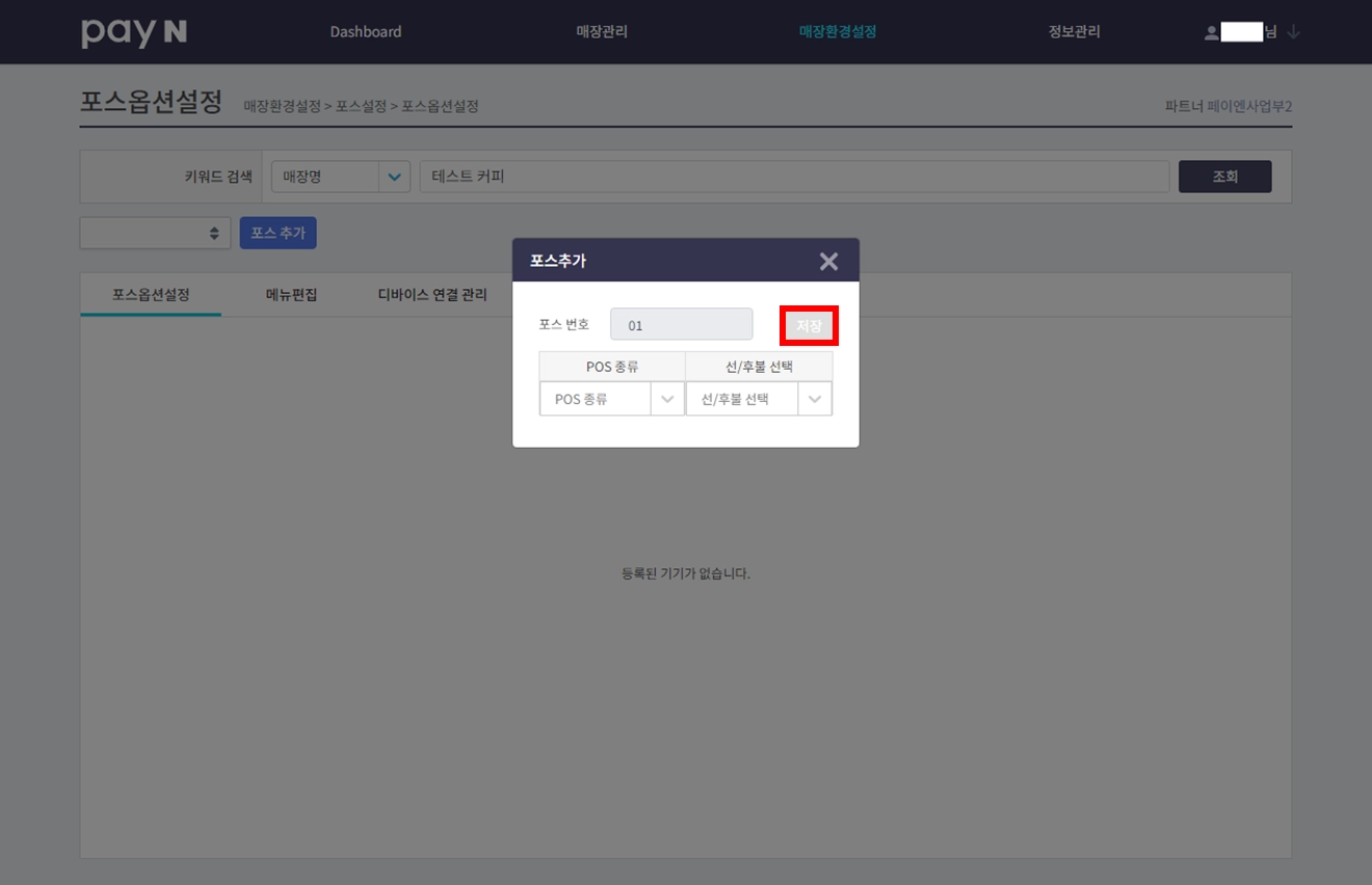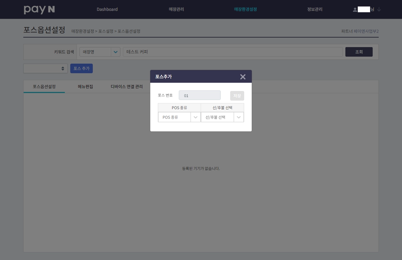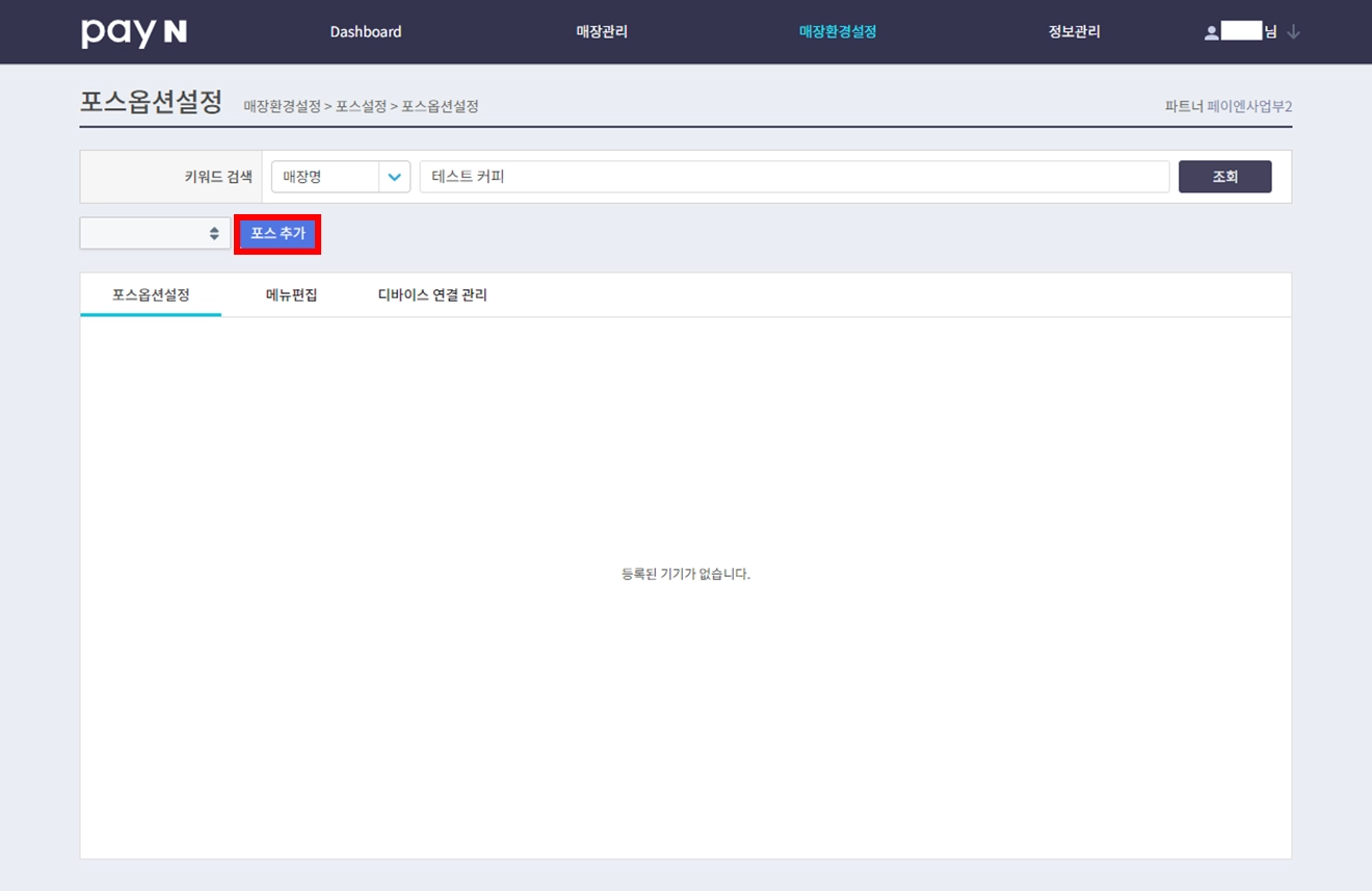 포스 생성 후 장비를 연결해 주세요.