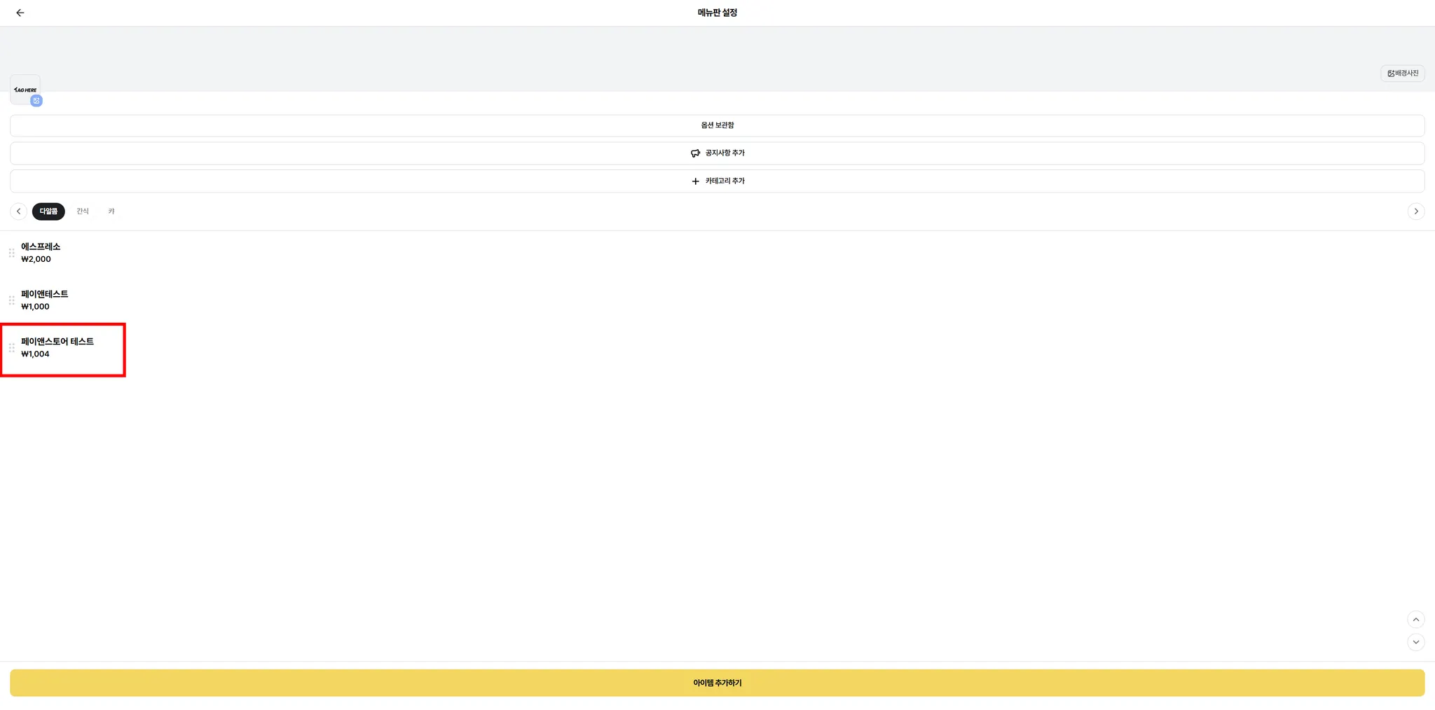 포스에서 생성한 상품명/금액이 다른 경우, 연동 및 주문이 불가하니 유의해 주세요.