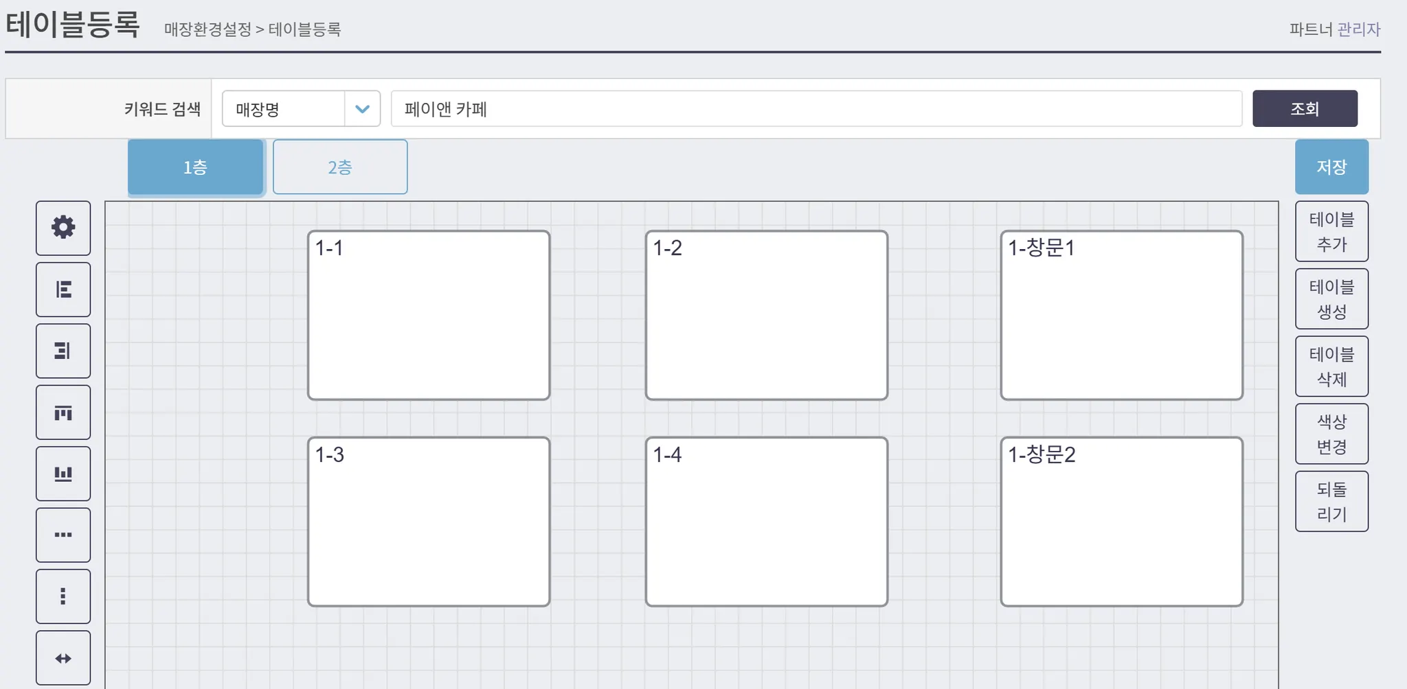 반드시 포스와 태그히어 테이블명을 동일하게 등록한 후, 진행해 주세요.테이블 수정