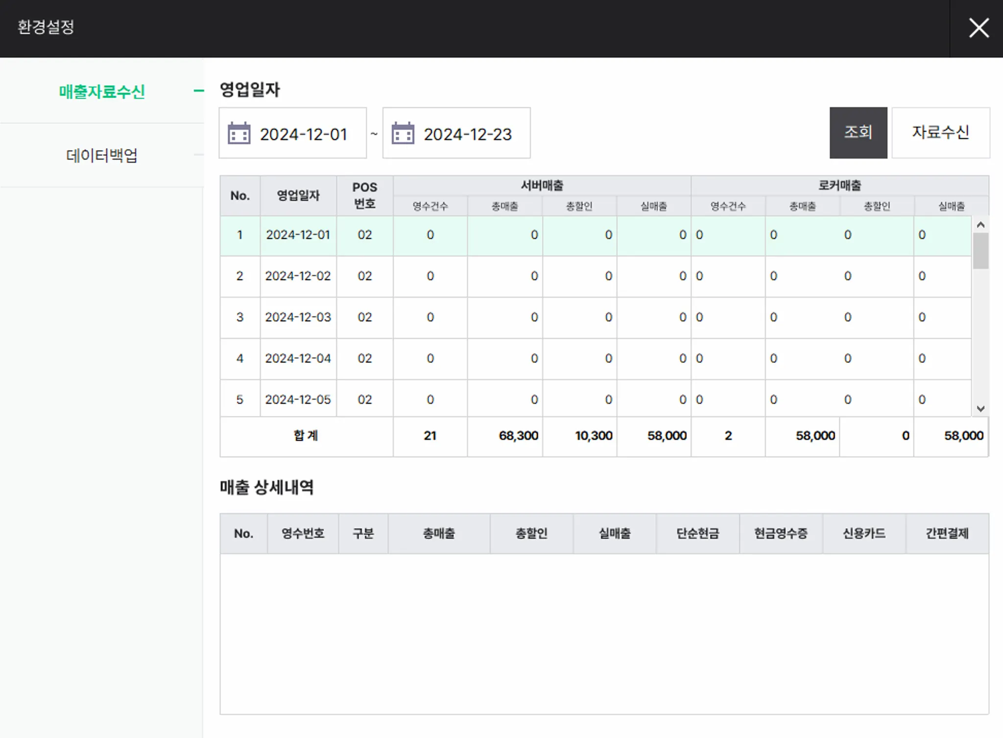 재설치 시, 서버에서 매출을 자동으로 불러와요.