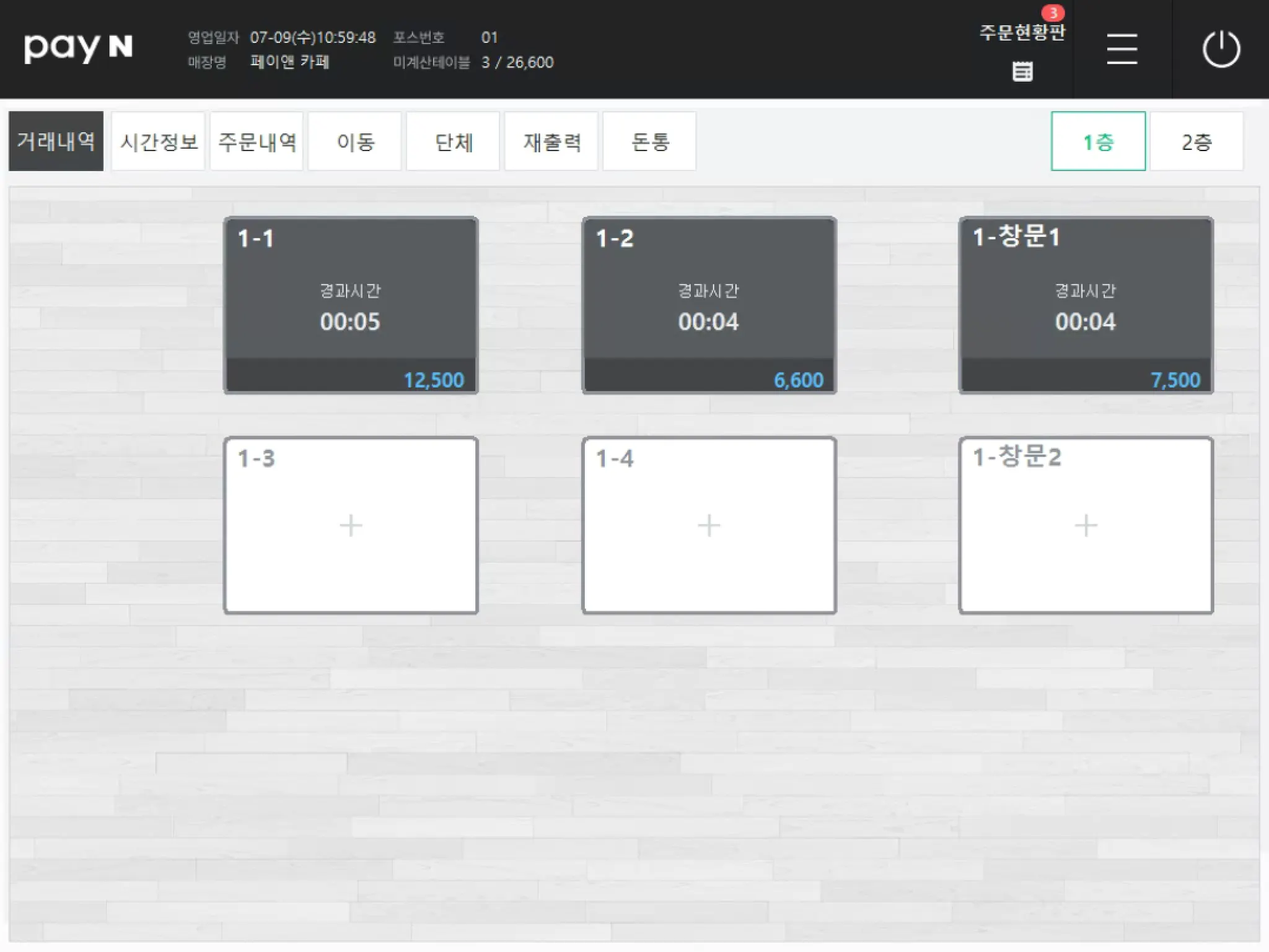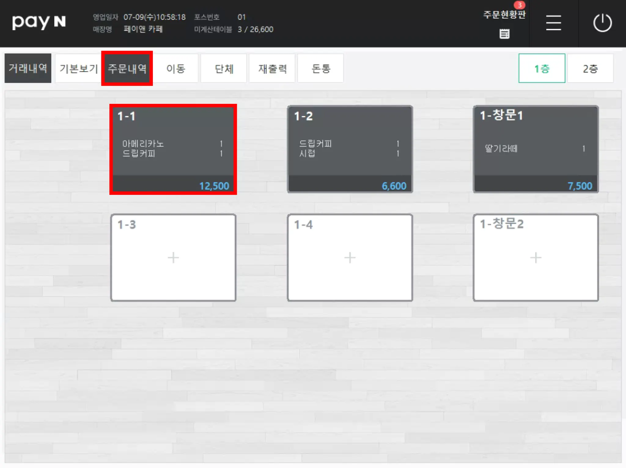 [주문내역]에서 테이블을 선택하면, 해당 테이블의 주문내역을 확인할 수 있어요.
