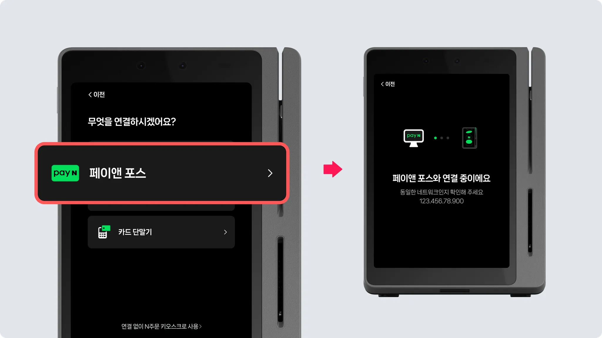포스와 Npay 커넥트는 반드시 동일한 와이파이로 연결해 주세요.