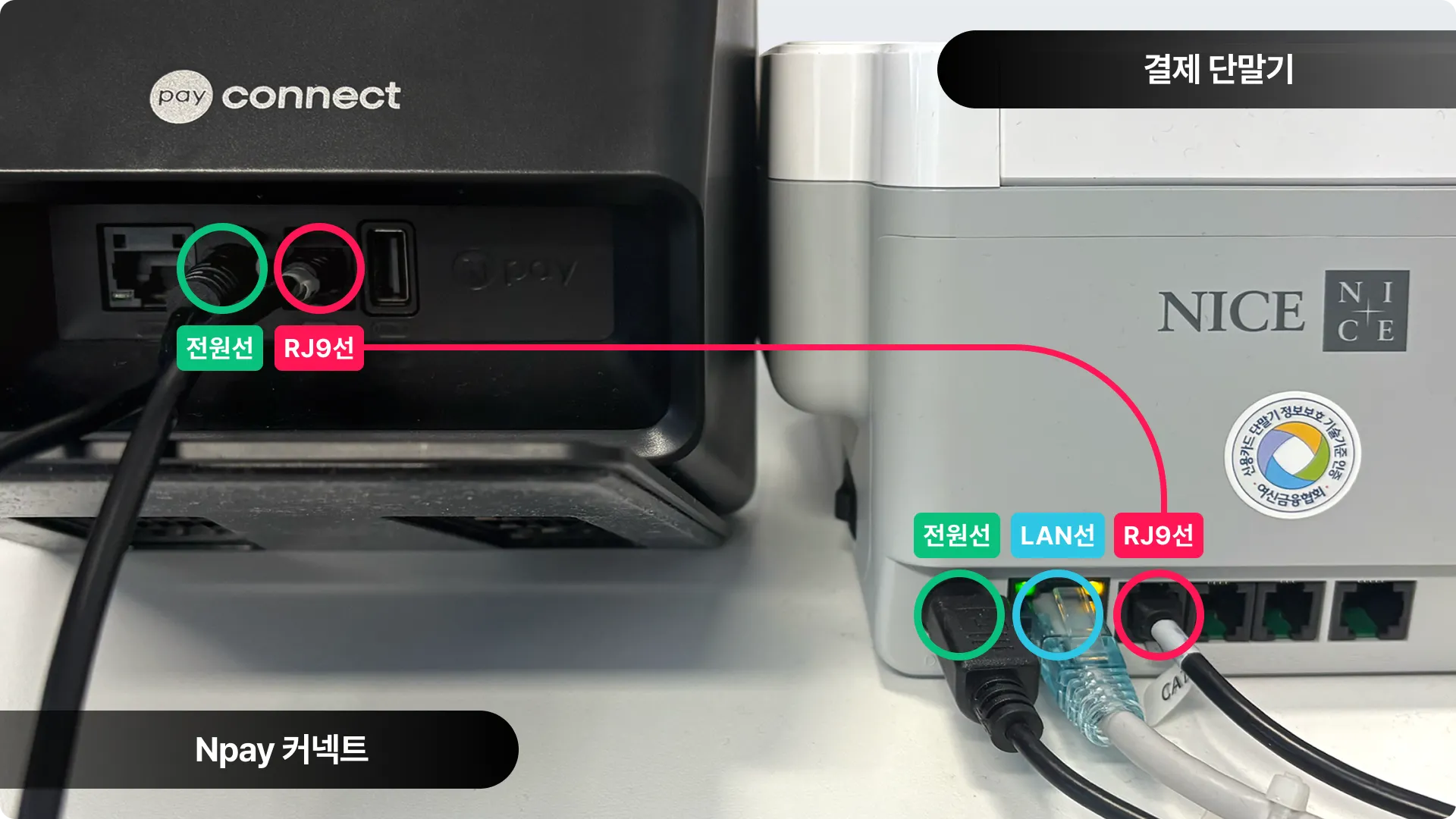 RJ9선을 통해 결제 단말기와 Npay 커넥트를 연결해 주세요.