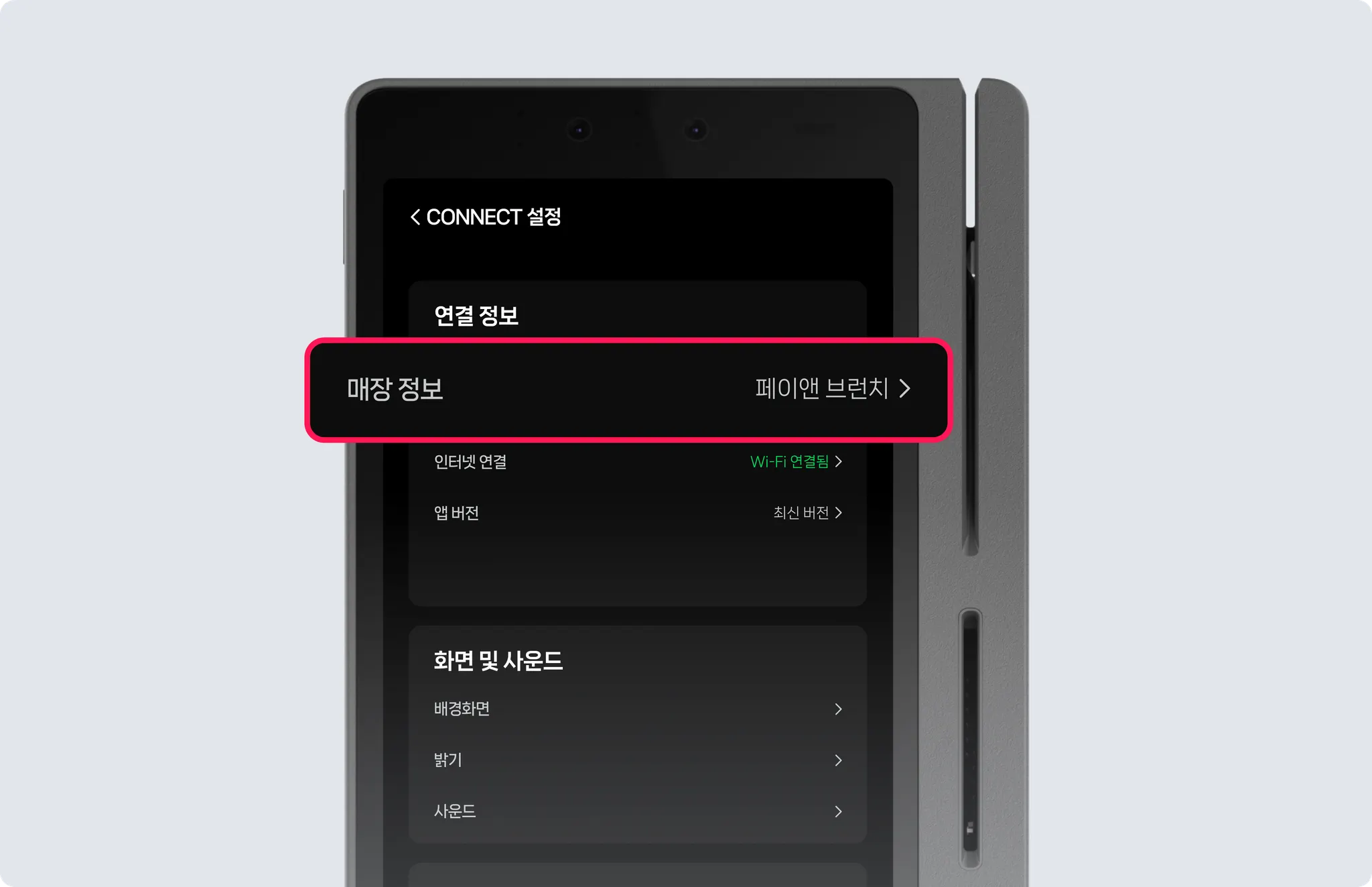 [연결 정보] > [매장 정보]를 눌러주세요. ex) 페이앤 브런치