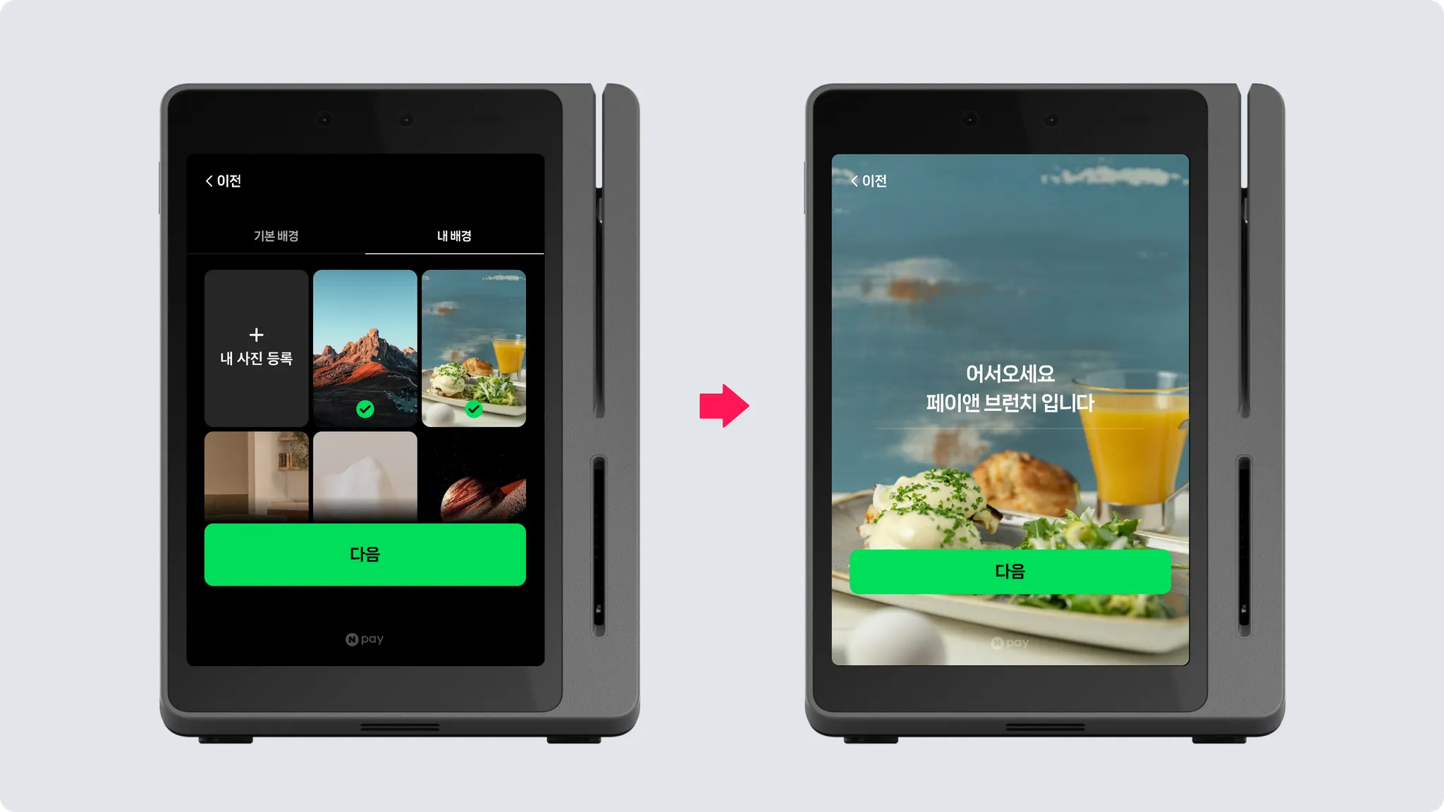 배경화면으로 등록할 이미지를 선택한 후, [다음]을 눌러 설정을 완료해 주세요.•