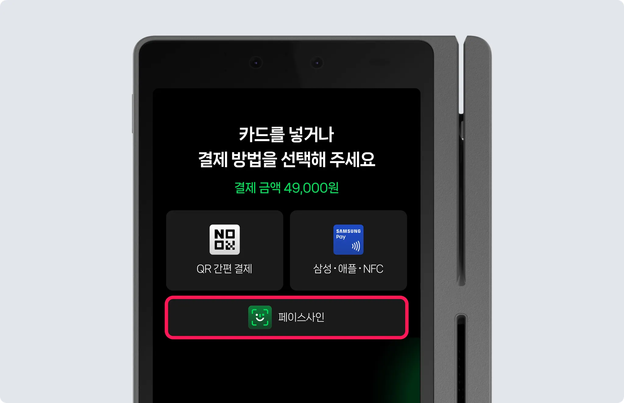 결제 화면에서 [페이스사인]을 눌러주세요.