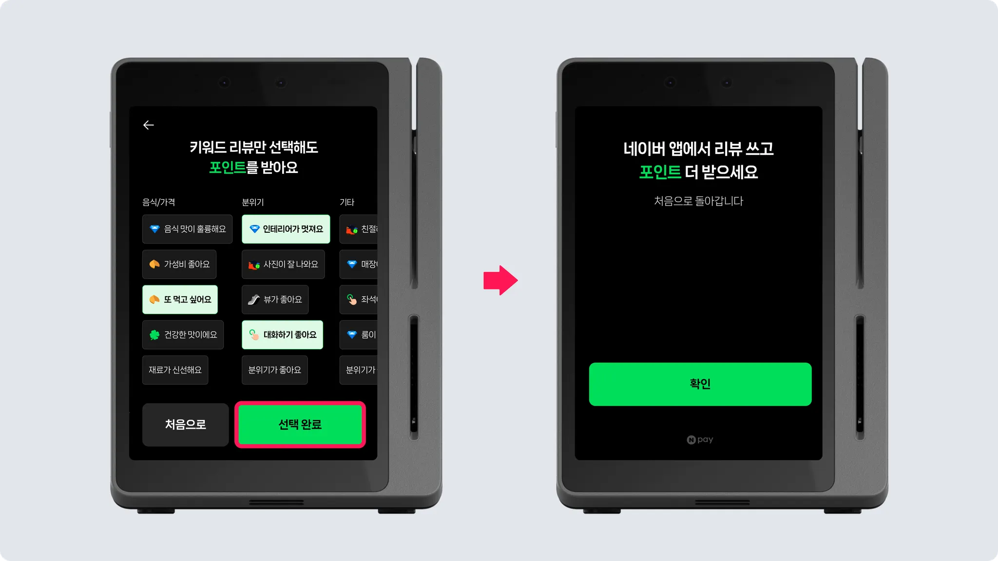 키워드 리뷰를 선택한 후, [선택 완료]를 눌러주세요.