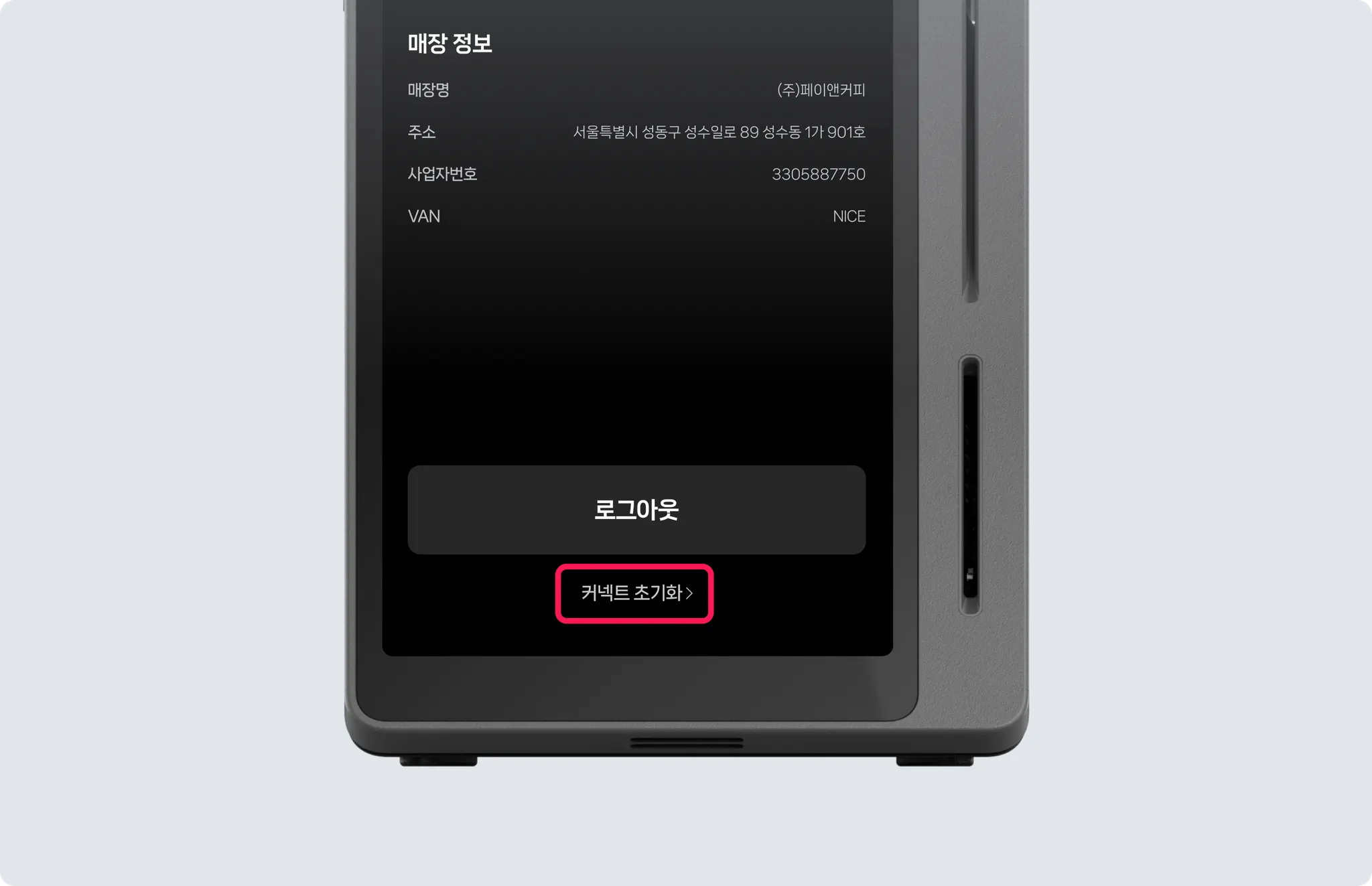 [연결 정보] > [매장 정보]를 눌러주세요. ex) 페이앤 브런치