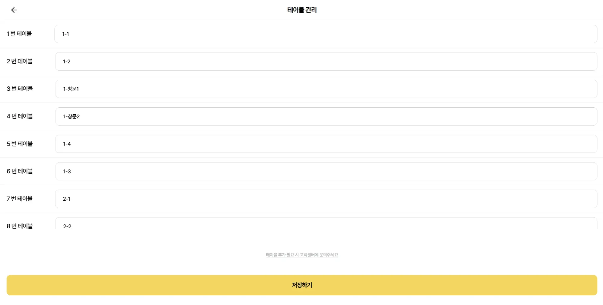 반드시 포스에 등록한 테이블명과 동일하게 등록해 주세요.
