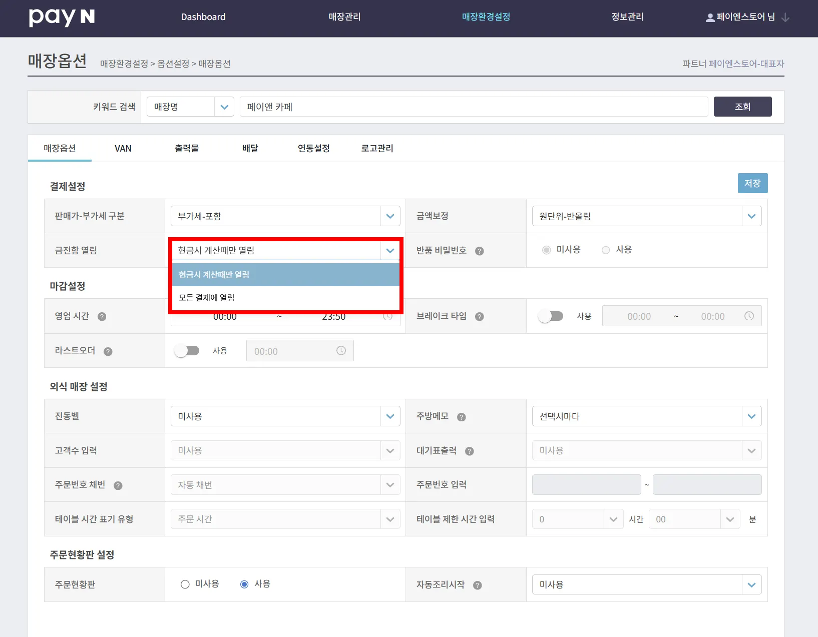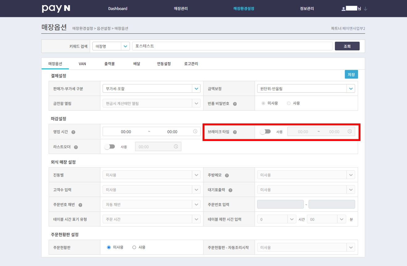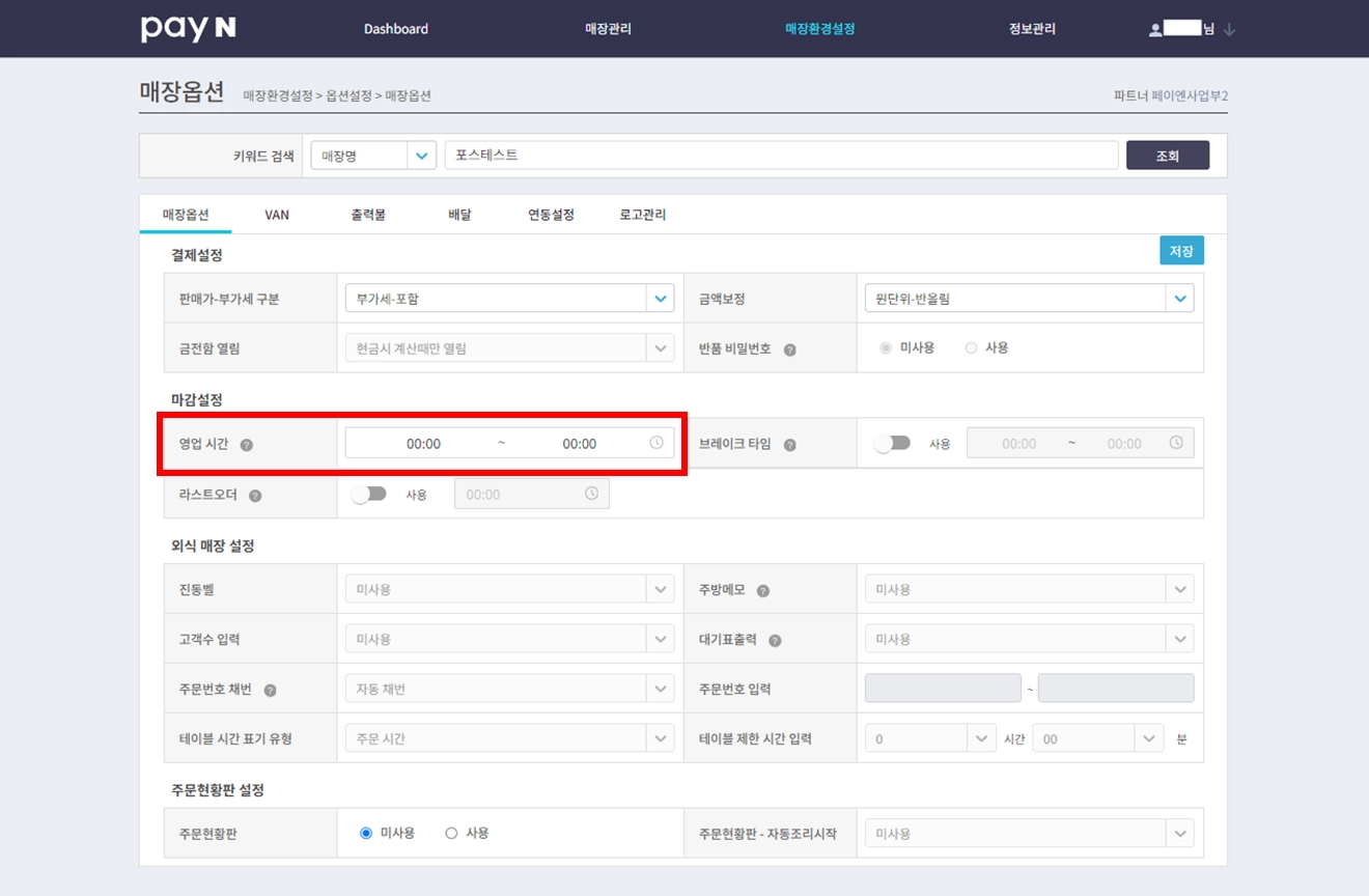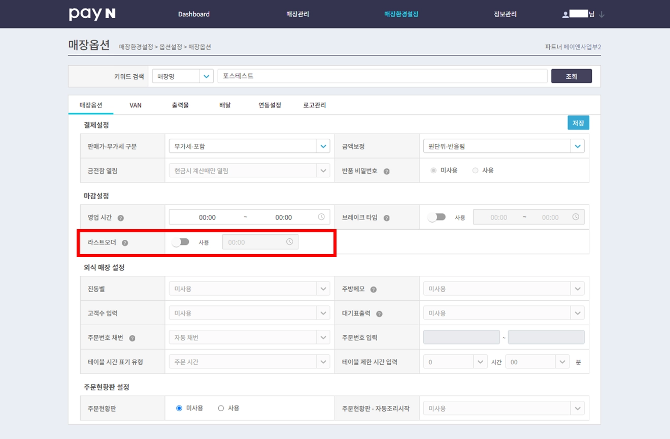 해당 기능 활성화 시 라스트 오더 시간을 설정할 수 있어요.