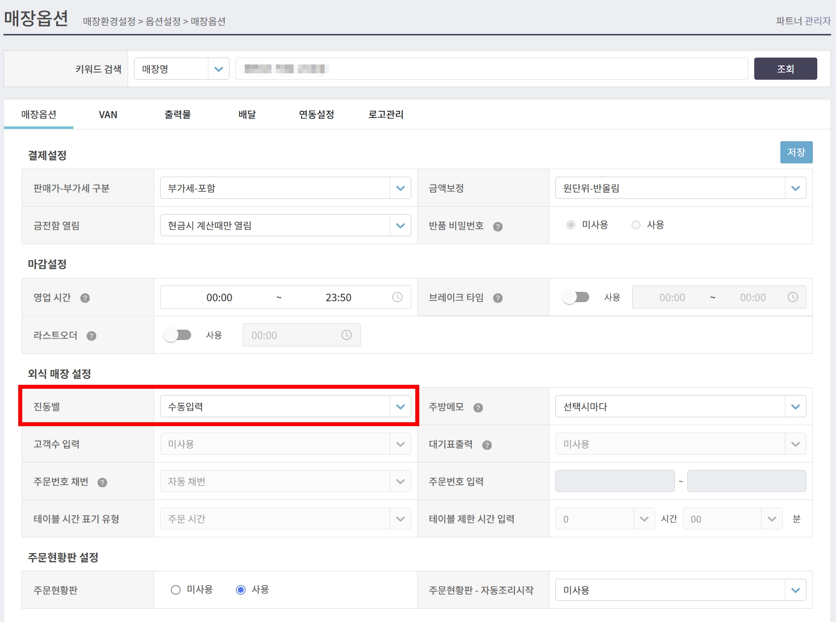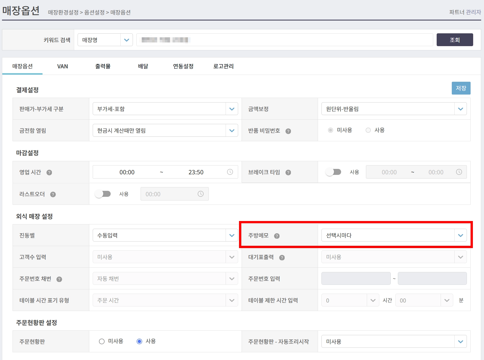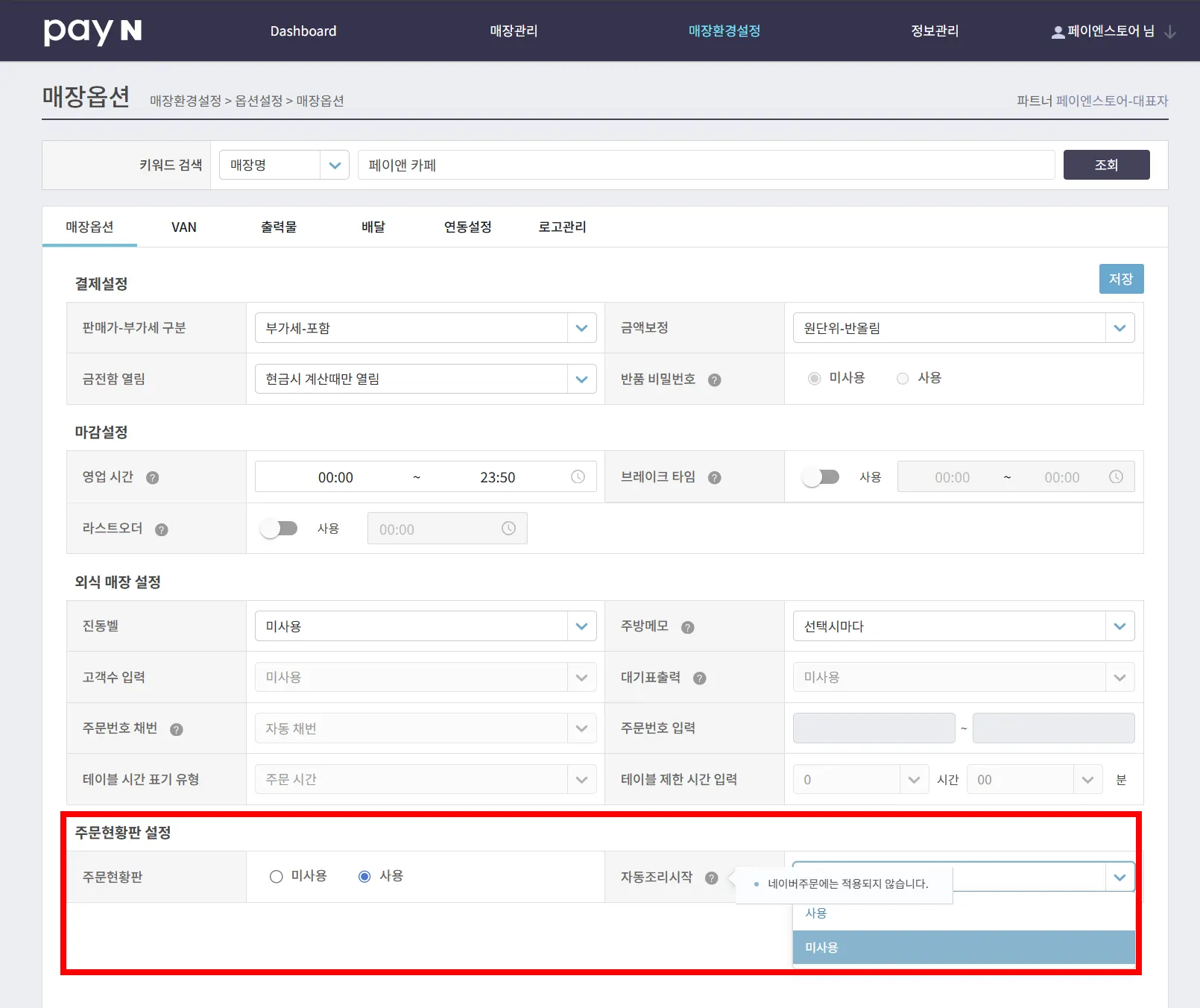 (윈도우포스 설정) 주문현황판 사용여부를 설정해주세요. (네이버 주문 사용 시 반드시 사용 필요)