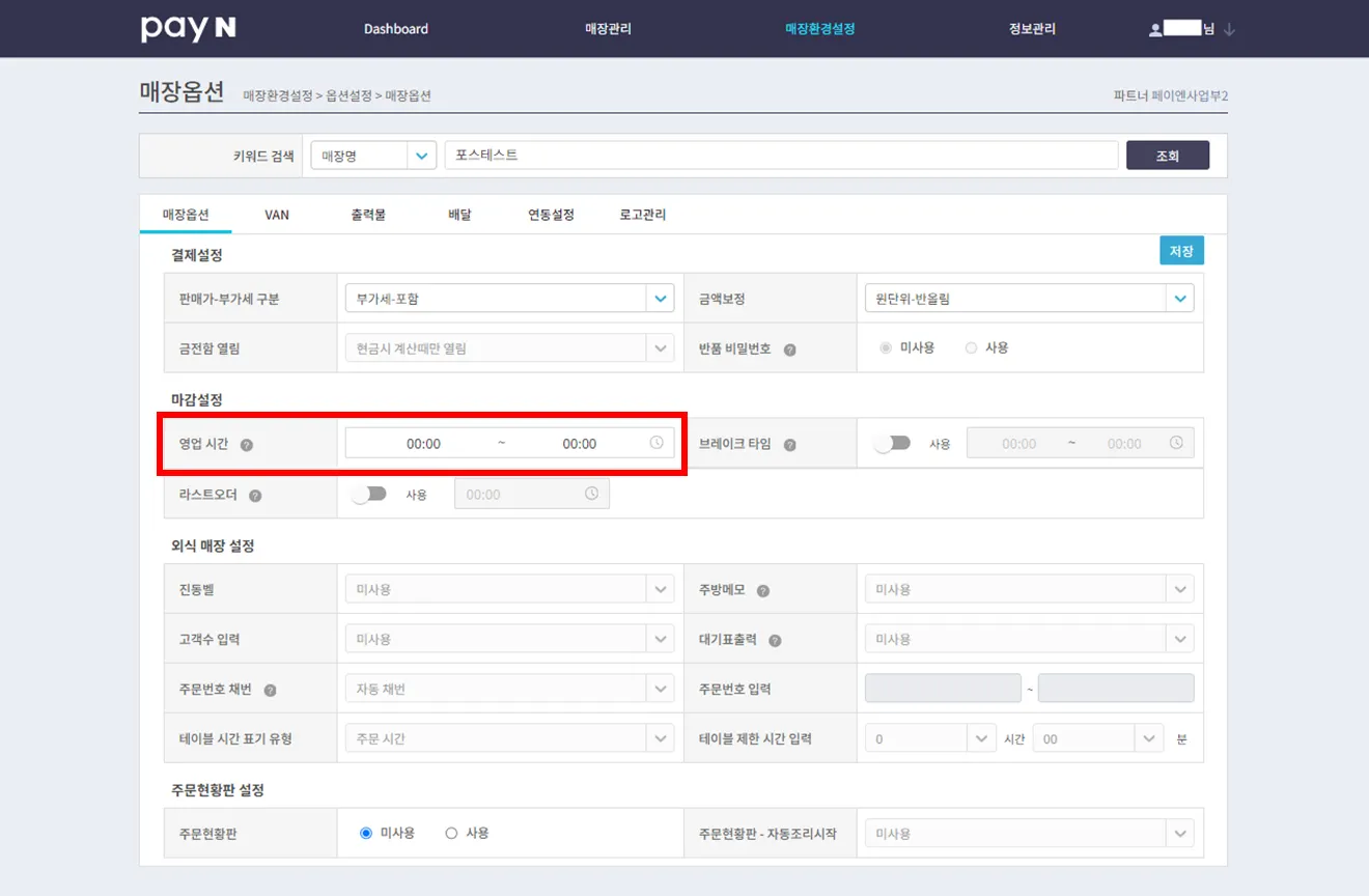 페이앤 포스 마감설정은 포스에 대한 마감이 아닌 네이버 주문/예약에 반영되는 영업 시간이에요.외식 매장 설정