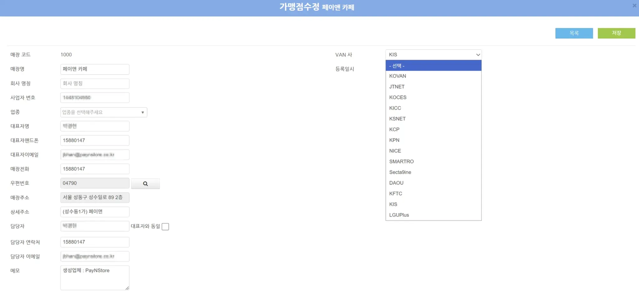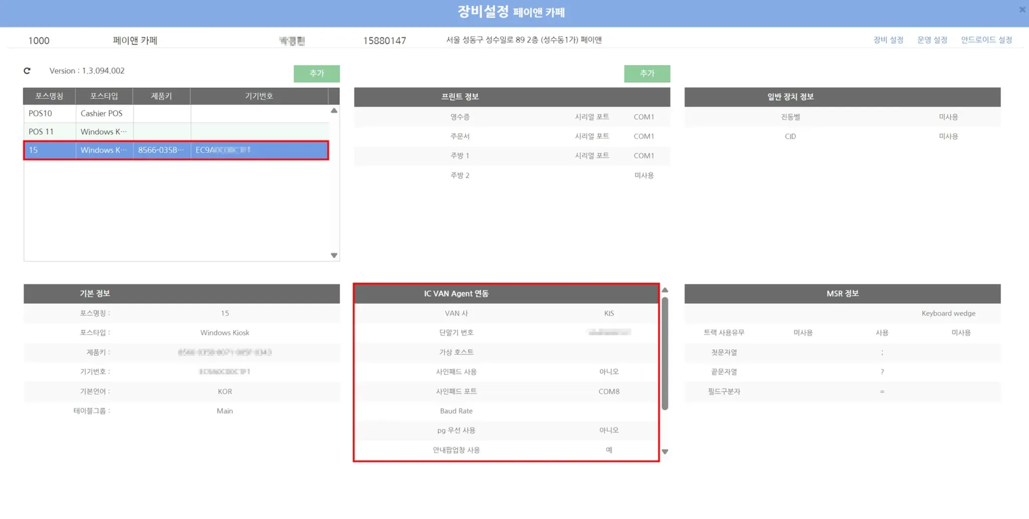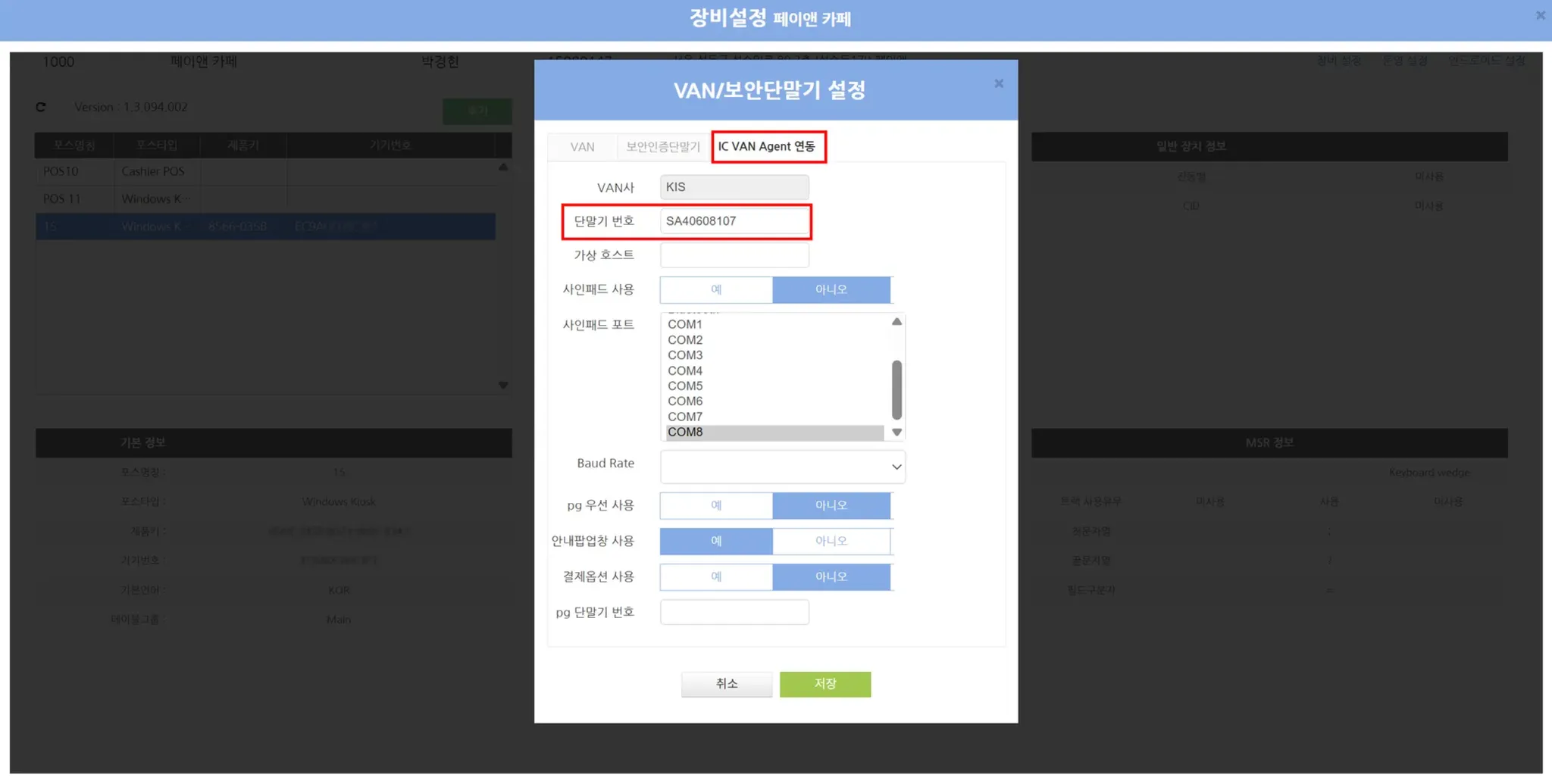 [VAN사]를 선택해 주세요.키오스크 IC VAN AGENT 연동