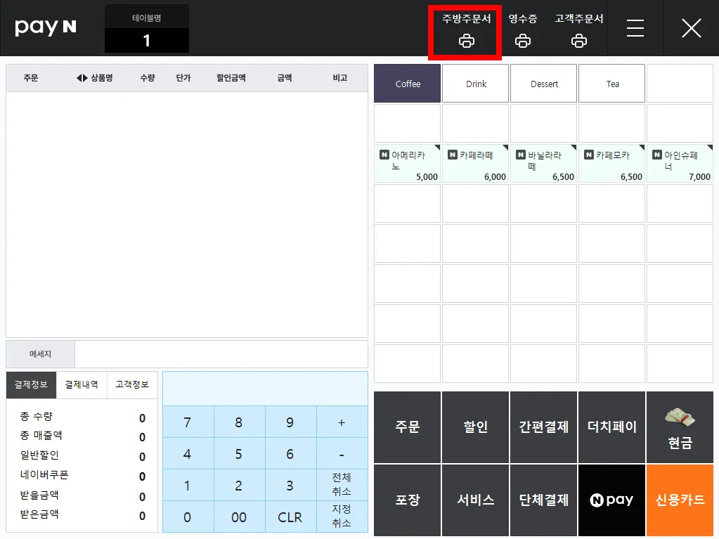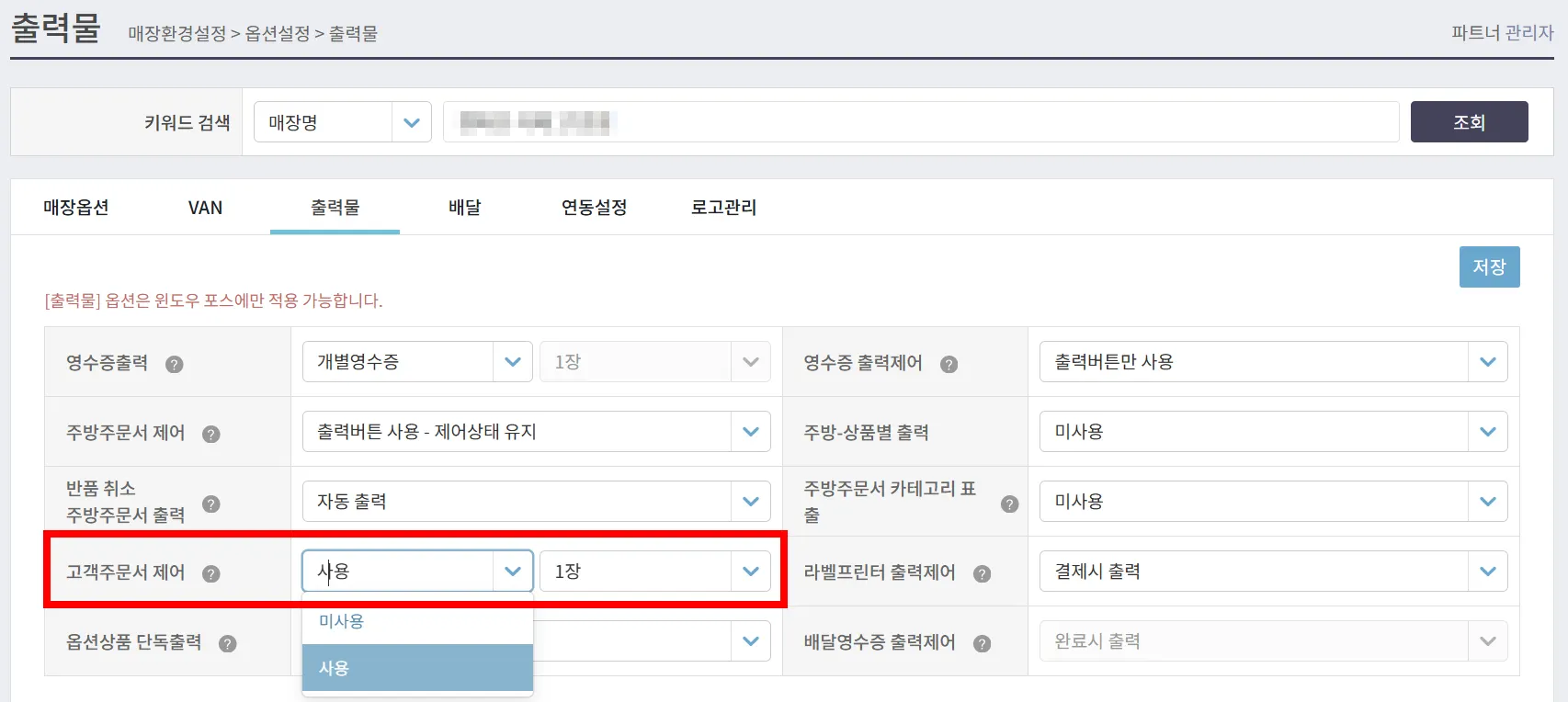 사용 : 포스에서 고객주문서 출력/미출력을 설정할 수 있어요.