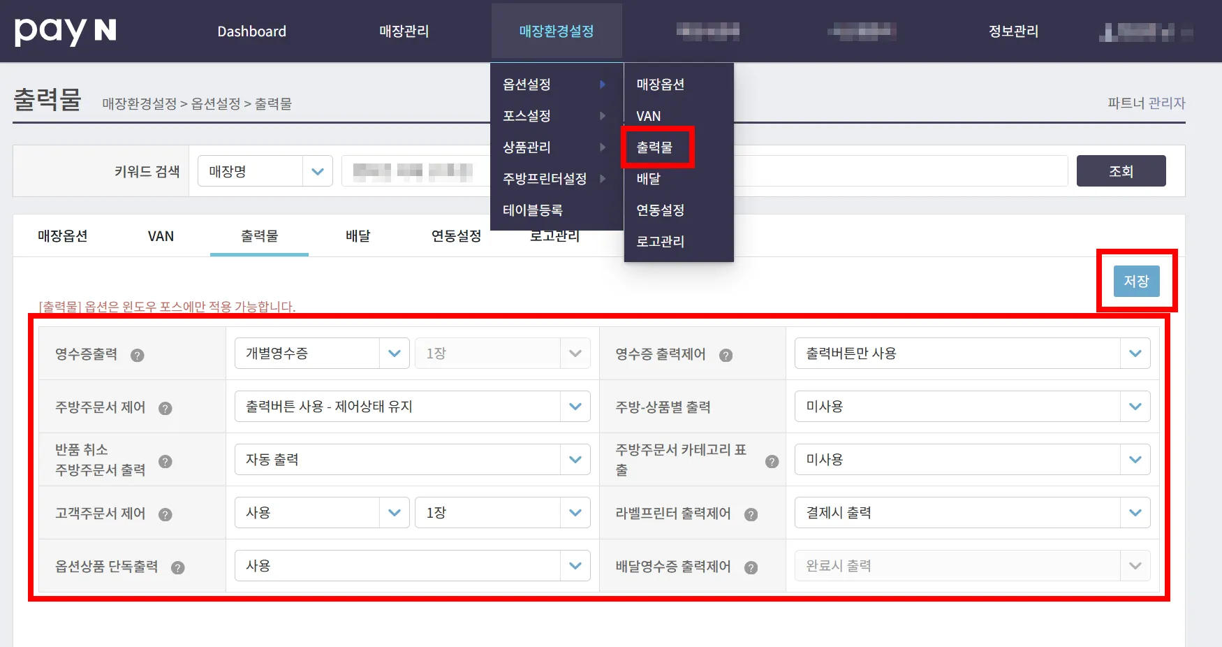 출력물 옵션은 윈도우 포스에만 적용 가능해요.영수증 출력