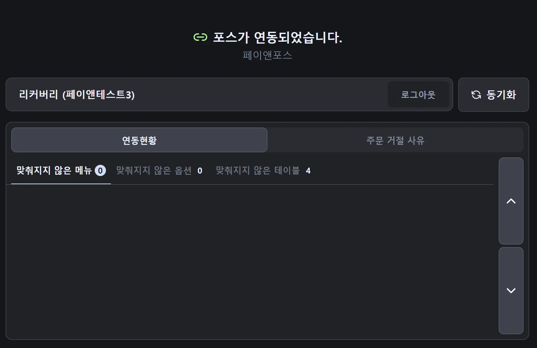 [포스 연동]에서 [연동하기]를 누른 후, 연동현황을 확인해 주세요.