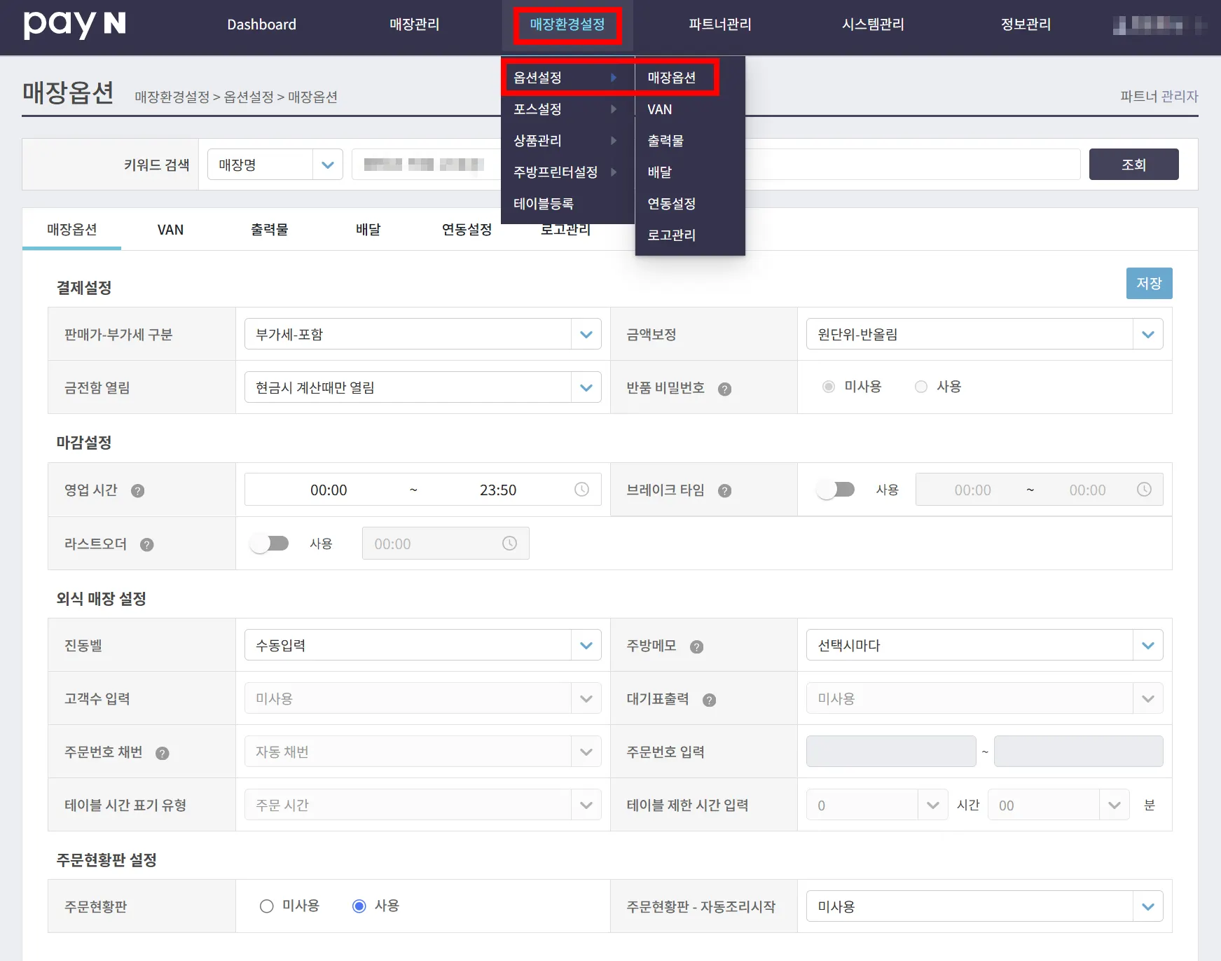 설정을 마친 후, [저장]을 눌러주세요.VAN 설정