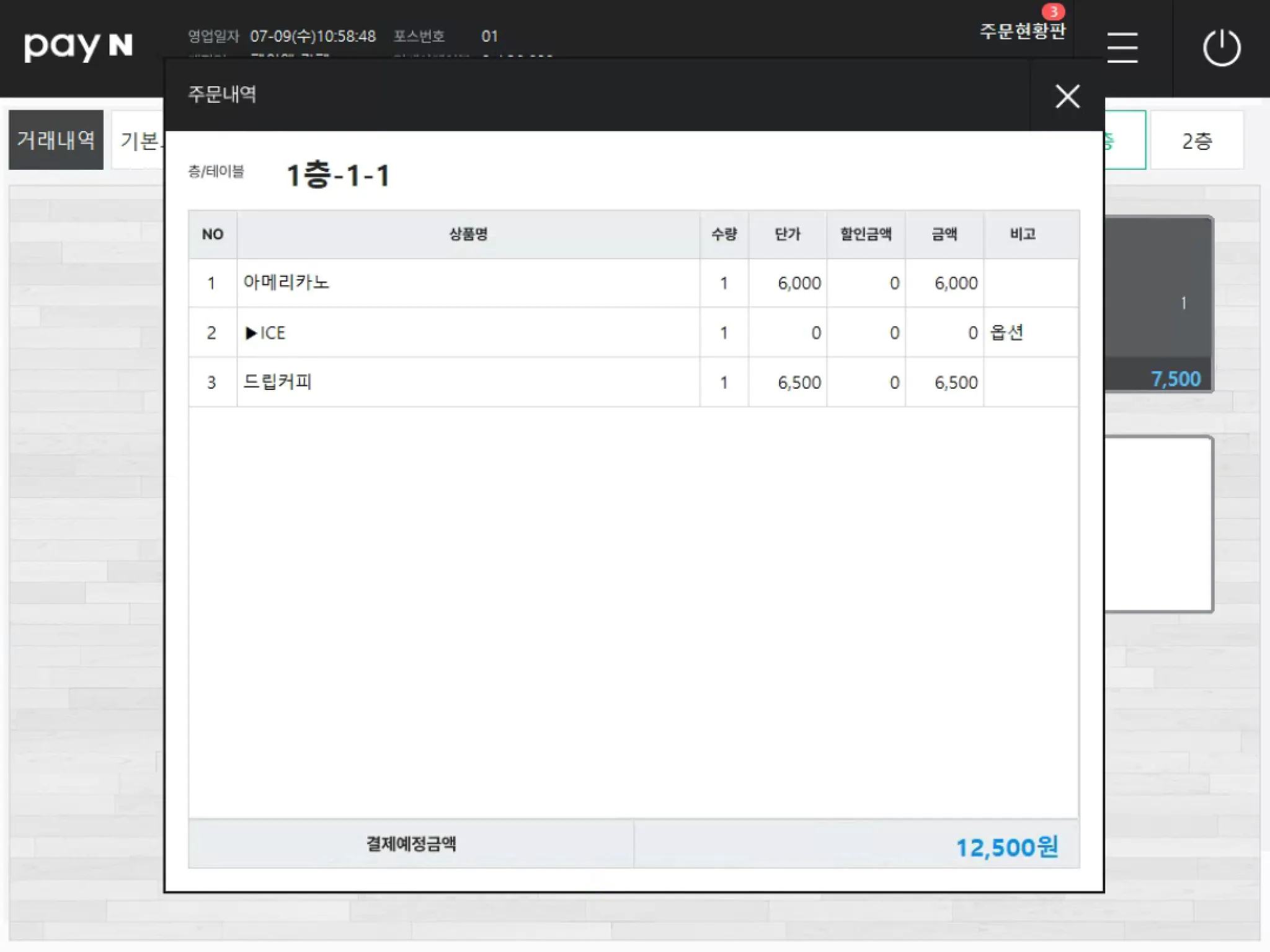 [주문내역]에서 테이블을 선택하면, 해당 테이블의 주문내역을 확인할 수 있어요.