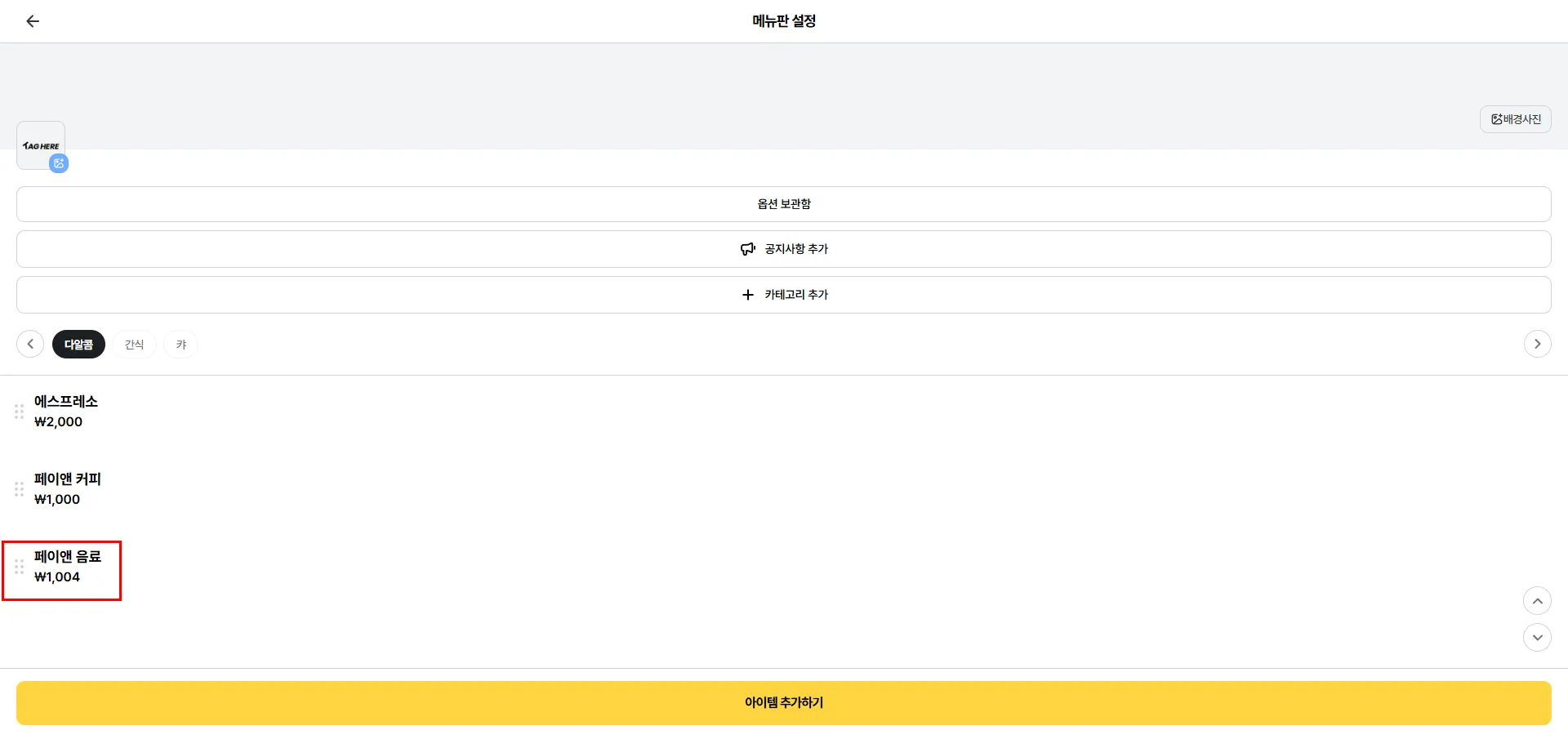 태그히어에서 수정하는 메뉴/테이블은 모두 포스에서 먼저 수정해주세요!