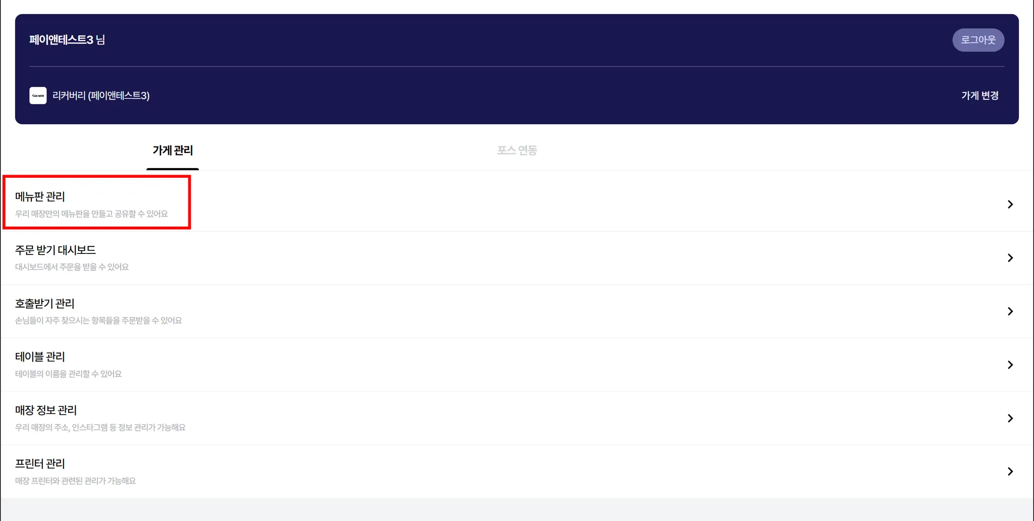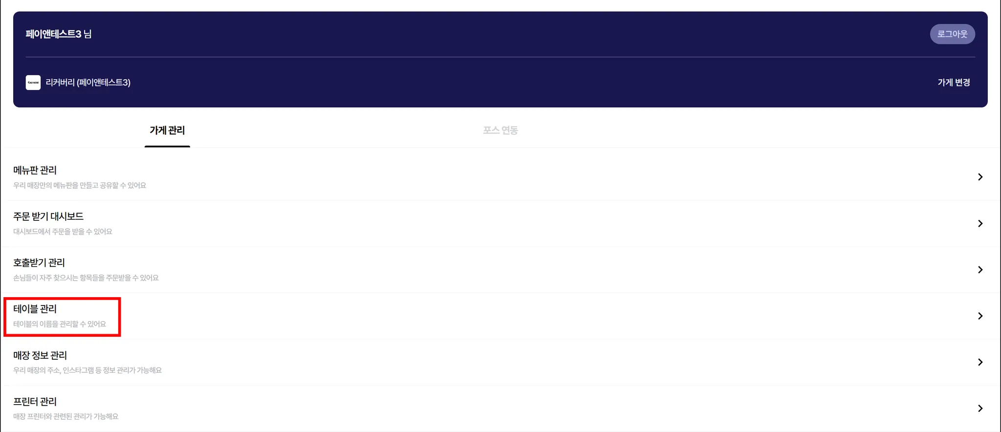 포스와 태그히어에 테이블을 연동한 후 진행해야해요.