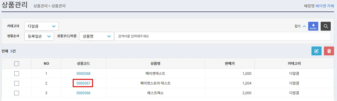 사장님페이지 > 상품관리 > 상품관리 > 상품코드에서 수정할 상품을 선택해주세요.
