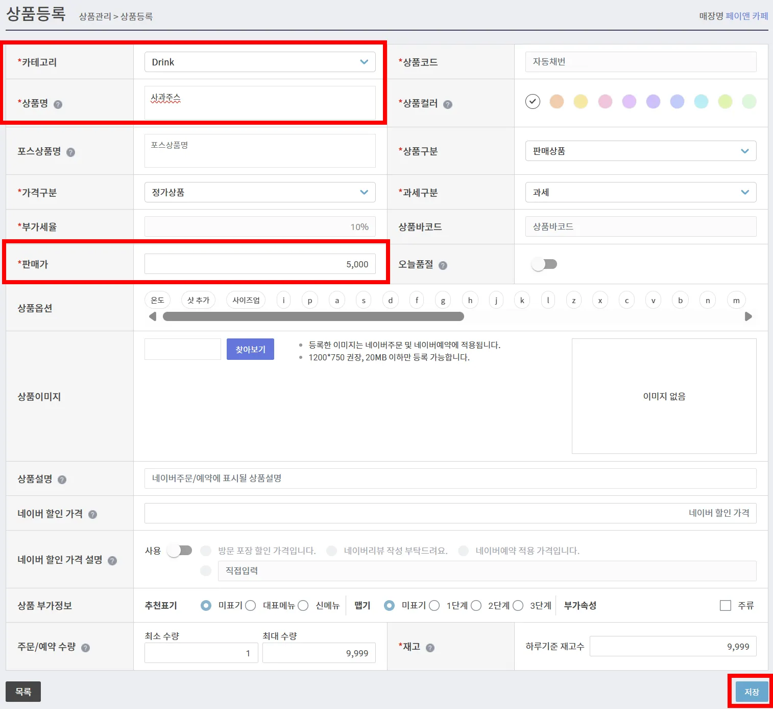 원하는 상품 카테고리가 없는 경우 [사장님페이지 - 상품관리 - 카테고리관리]에서 등록해주세요.